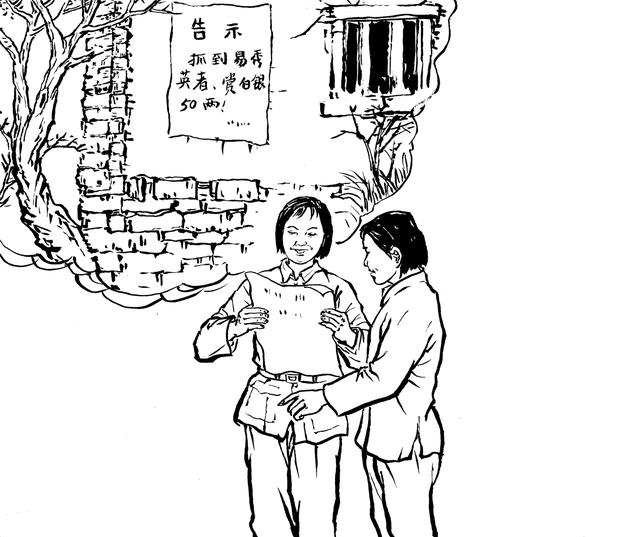 51. 敌人到处查找易秀英的下落,他们贴出告示:“抓到易秀英者,赏白银50两。”易秀英不顾个人安危,依然“冲锋陷阵”。战友们时常拿“告示”与她开玩笑,而她却为此感到无比自豪。