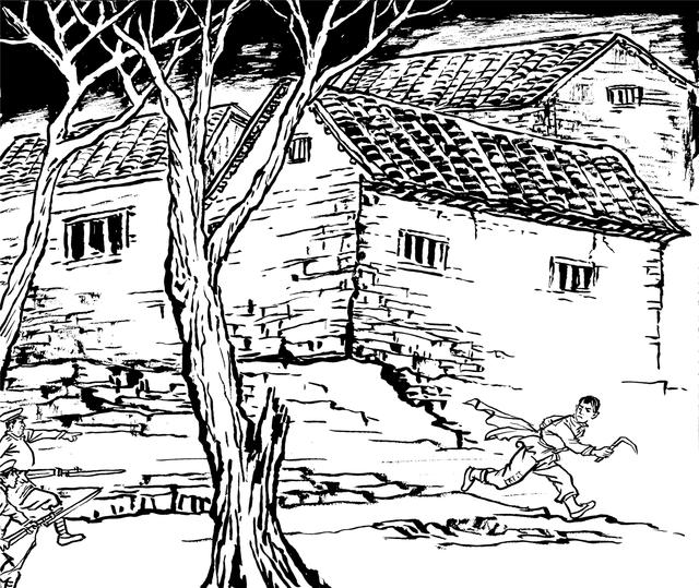 83. 国民党兵折腾到凌晨不死心,来到后烧村,把全村老少集中到广场清点人数,唯独少了彭畔。这时,彭畔满身污泥与伤痕,一手握着砍刀,一手拖着围裙回来了。