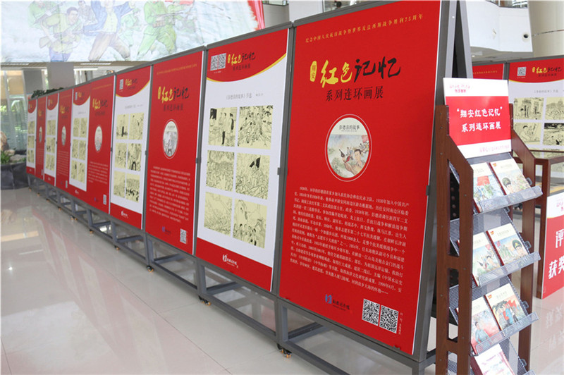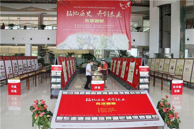 9月3日,正值中国人民抗日战争暨世界反法西斯战争胜利75周年,“铭记历史 开创未来”连环画展在厦门市图书馆开幕,展览至9月13日。