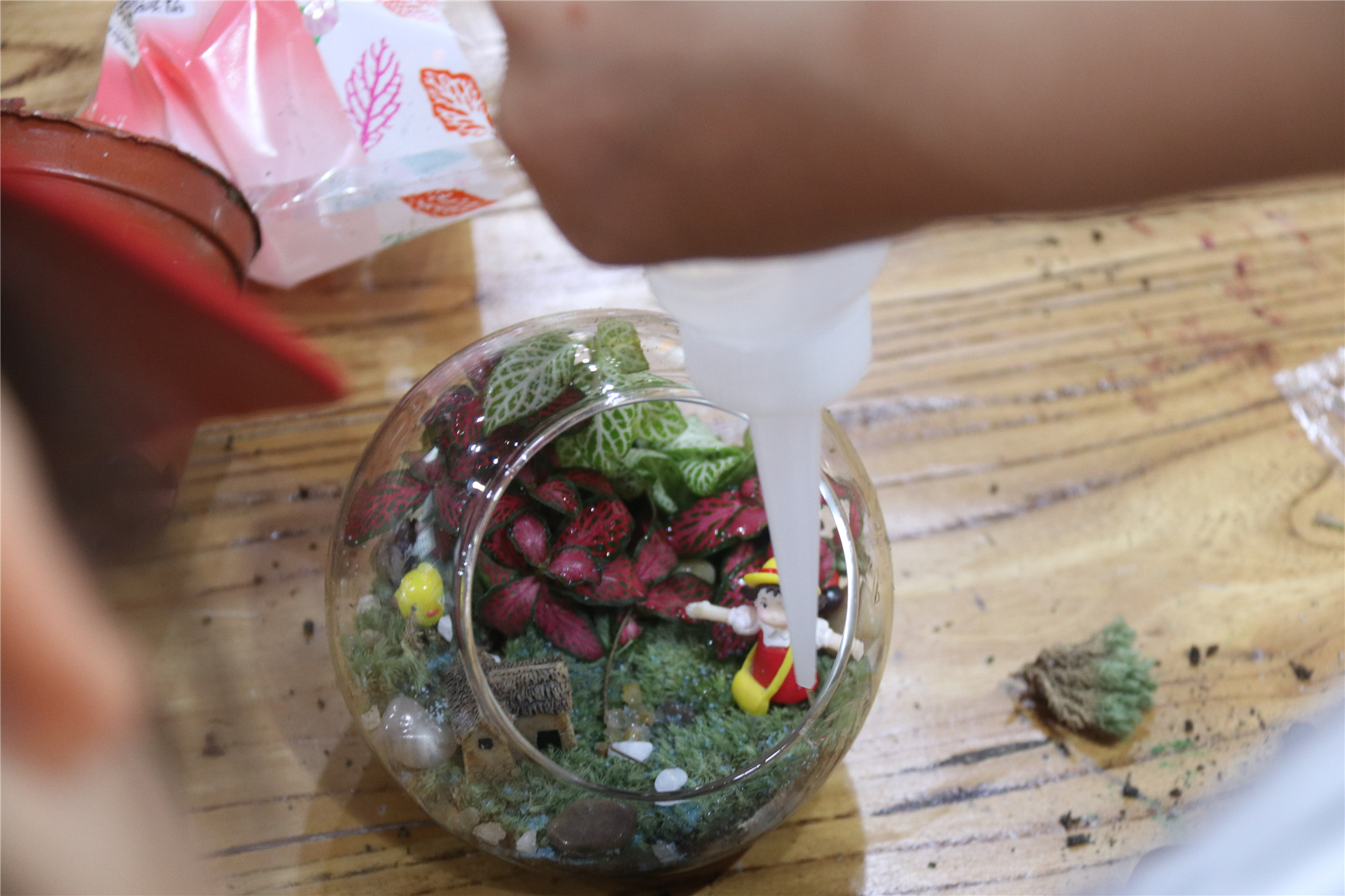读者们通过手作,在玻璃器皿内利用苔藓、小型观叶植物、隔水层、培养土、装饰沙、装饰石、配件等将真实世界的景色利用手工拼装制作,结合适当的美学构图原则,以微缩、精致的方式呈现出来,打造心目中的美好家园。