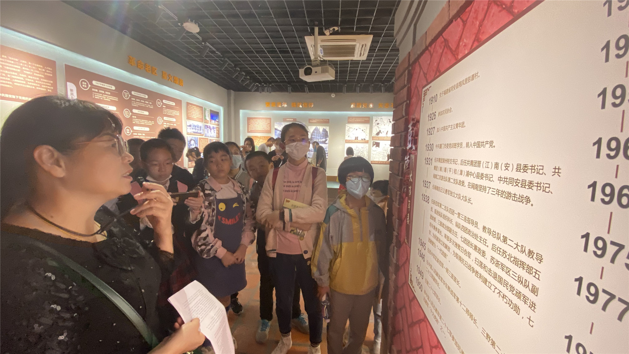 本次活动,林淑彬老师带着小读者走出图书馆,以“翔安红色之旅”为主线,向小读者讲解“翔安红色记忆”连环画——《彭德清的故事》《彭金励的故事》,介绍了彭厝历史根据地和彭厝革命英雄事迹,并前往彭德清纪念室参观,通过文字、图片、视频、AR互动,了解开国少将彭德清将军的光荣一生。