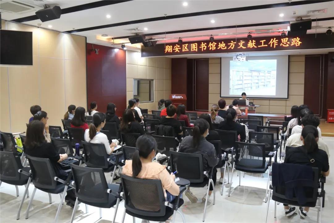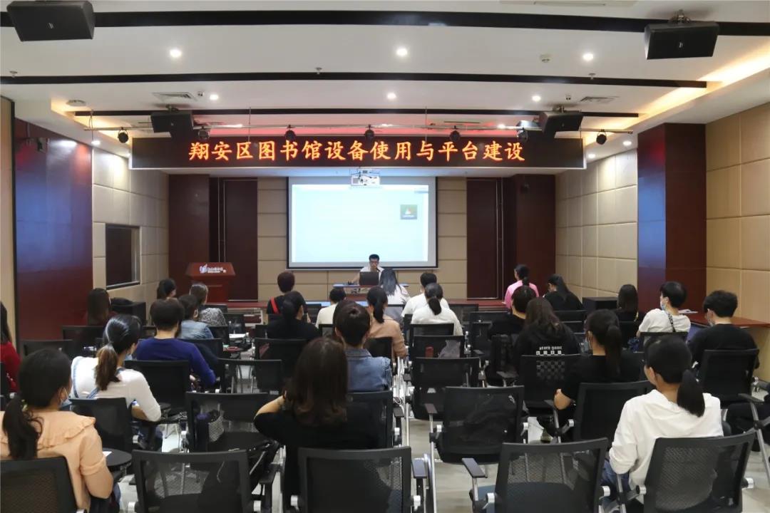 “书香翔安”全民读书月期间,翔安区图书馆召集总馆、分馆、邻里书屋全体工作人员在二楼报告厅参加员工业务培训。