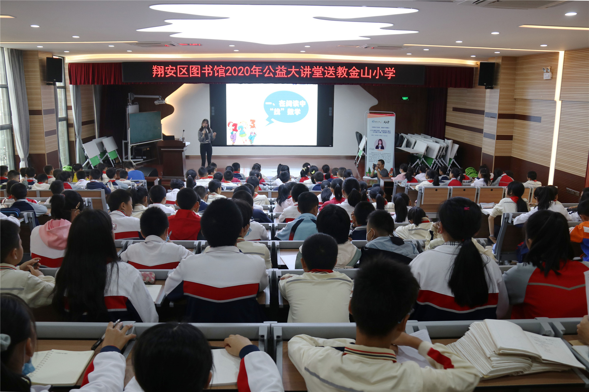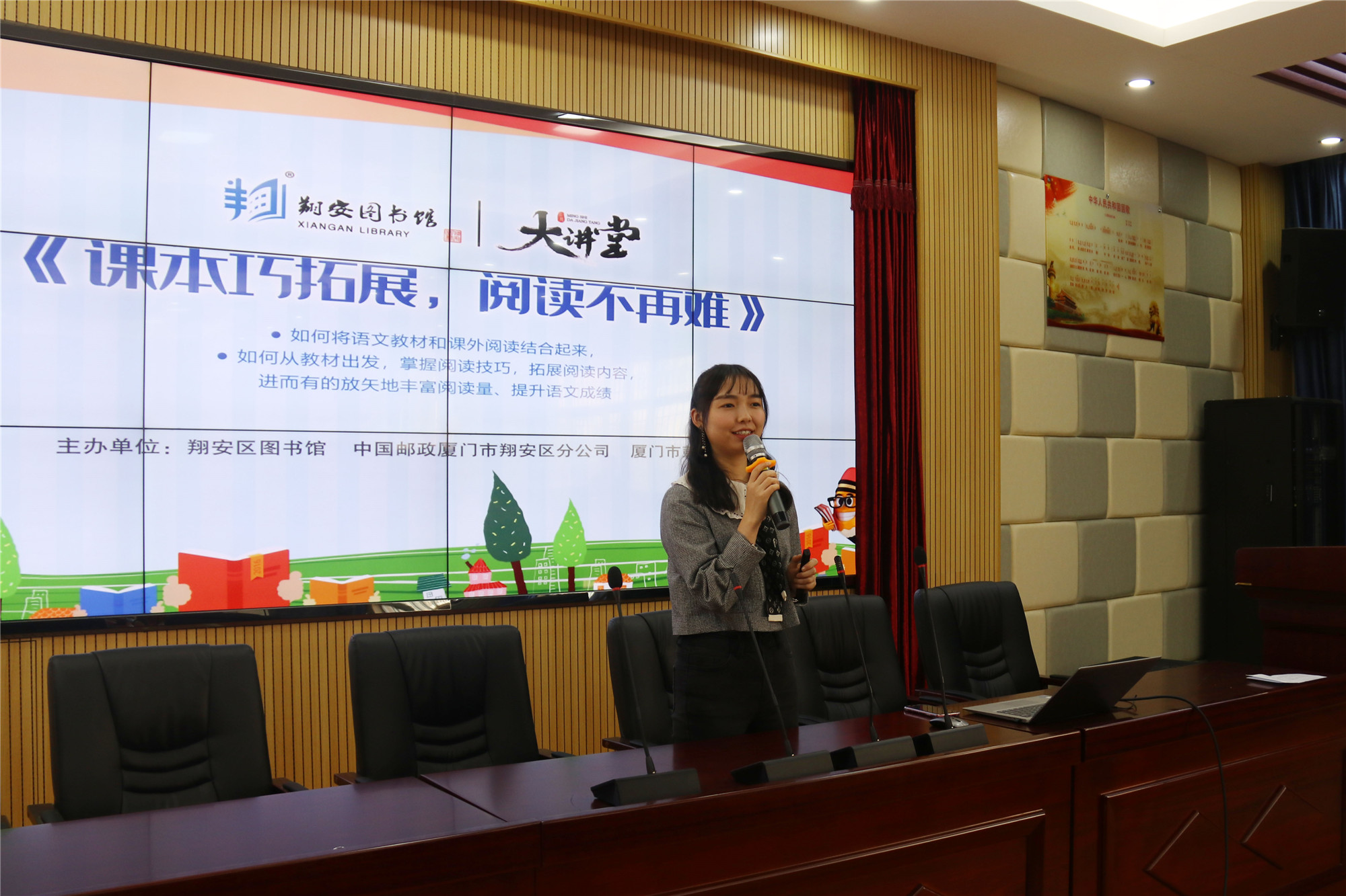 2020年11月9日、10日,翔安区图书馆“名师大讲堂”邀请《课堂内外》执行主编、全国“优秀少先队辅导员”、电视台少儿频道嘉宾主持乐乐姐姐,走进翔安区金山小学、厦门市彭厝学校、翔安区逸夫小学、翔安区马巷中心小学四所学校,为学生作了四场精彩的文学讲座。此活动亦是“书香翔安”2020年全民读书月系列活动之一。