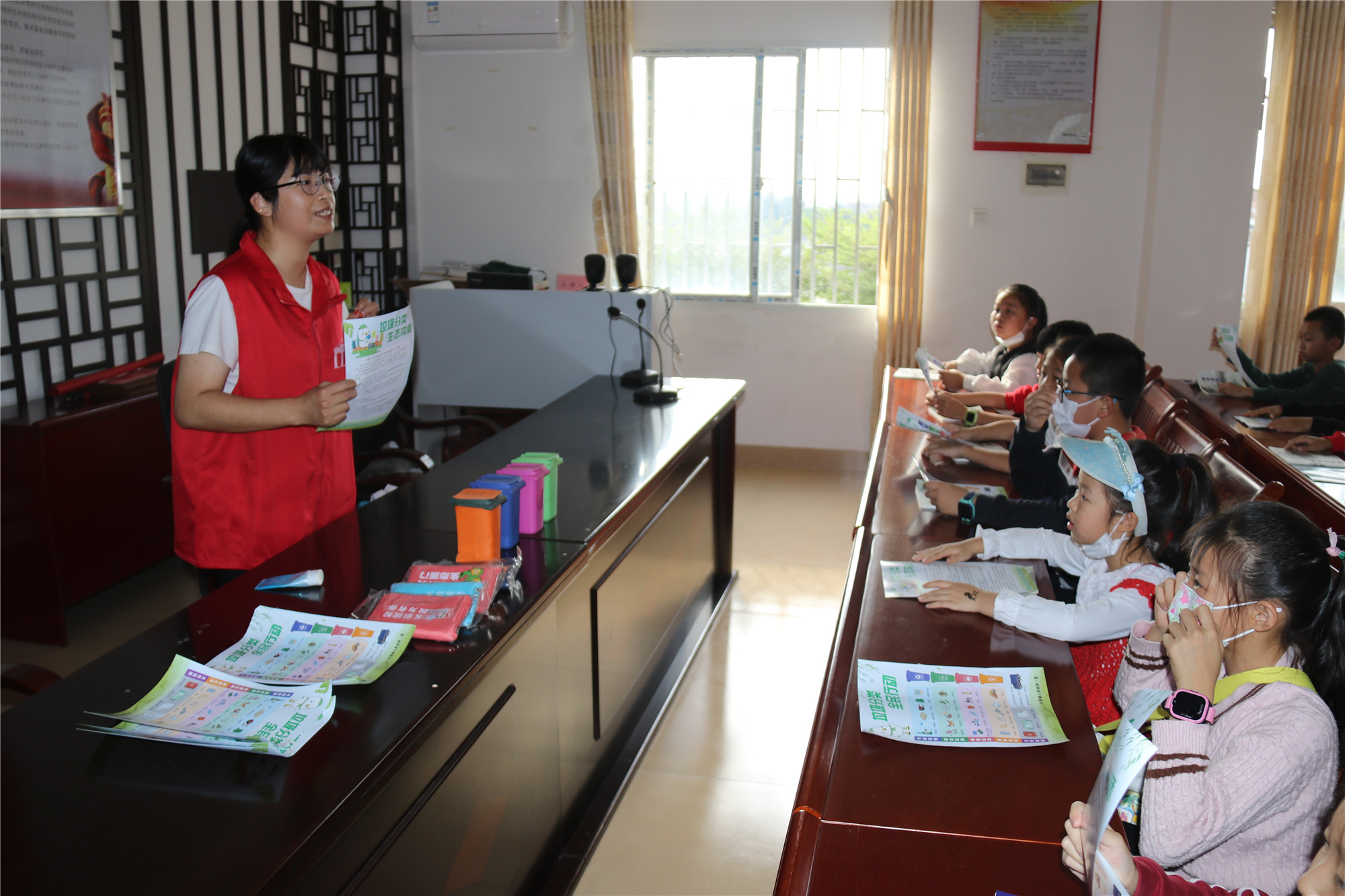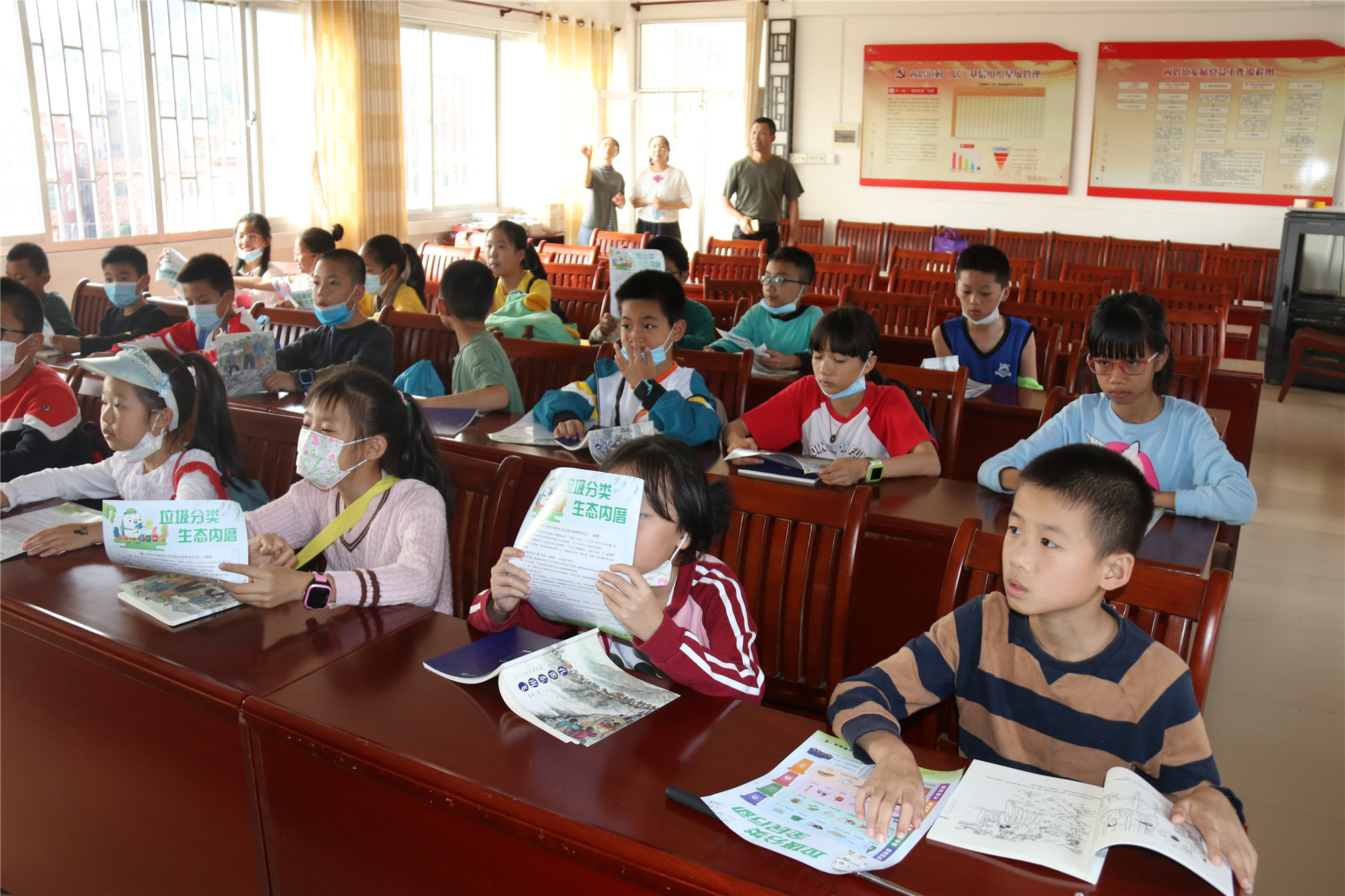 老师为小读者们普及环保和垃圾知识,从小抓起,让他们学会珍惜、爱护环境,争当文明使者,保护美丽乡村。