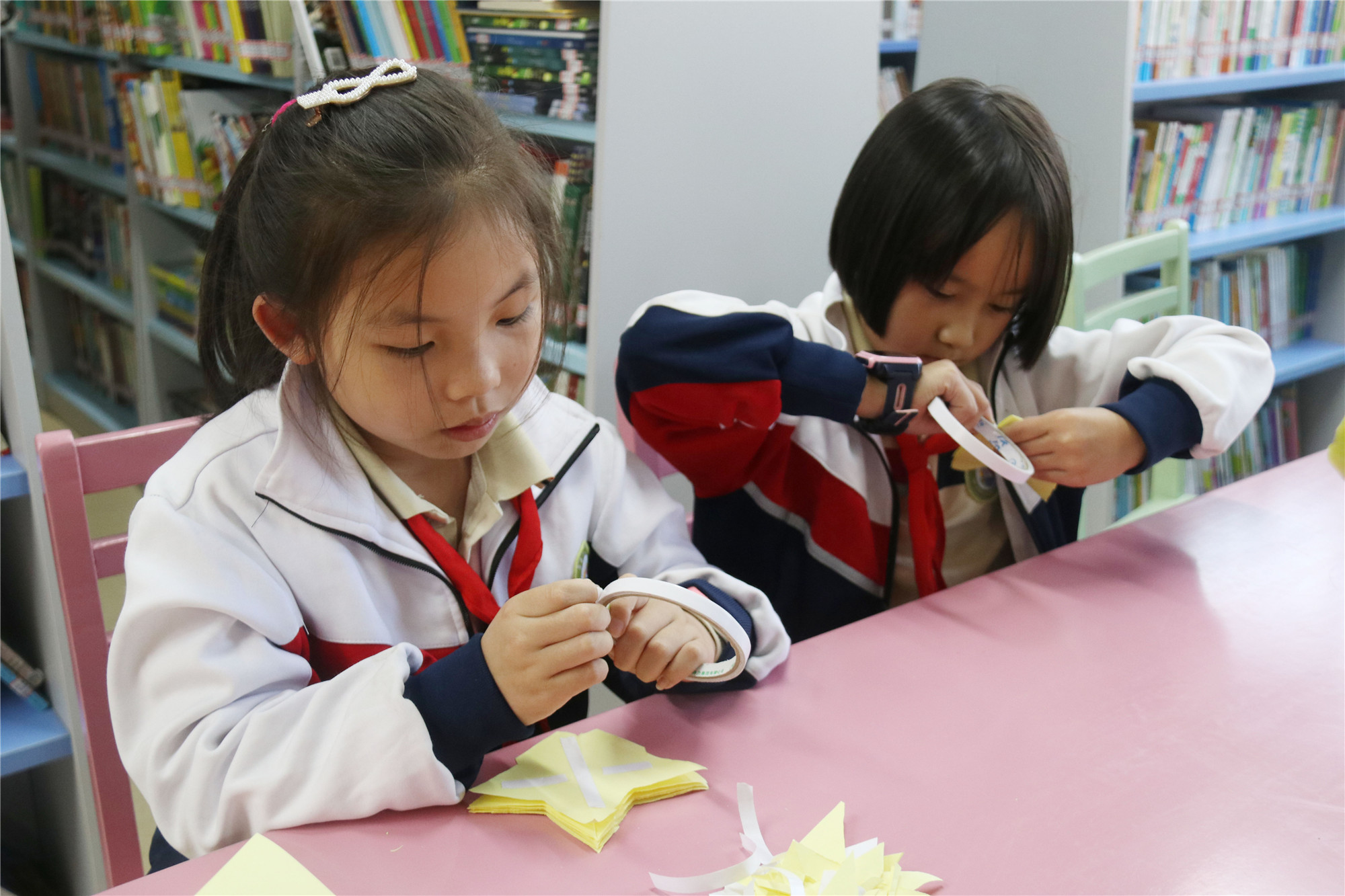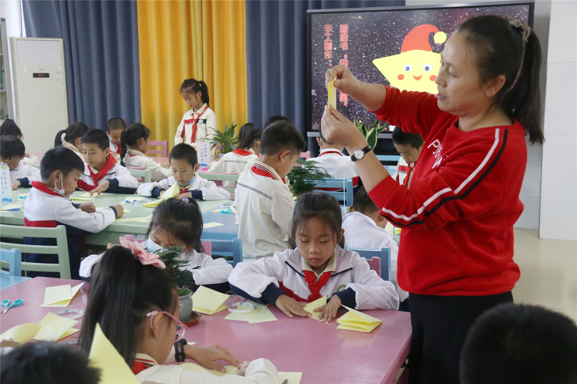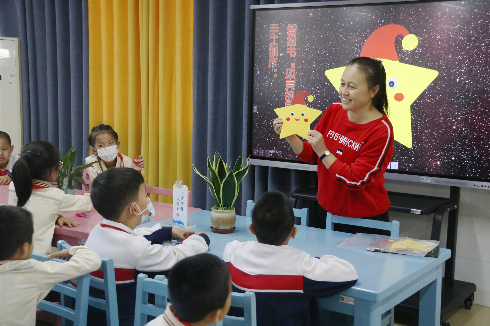 本次的主题是“你也是一颗闪亮的星”,香橼老师首先带来《我也是一颗星》这本绘本故事,引导学生们找到自己身上的闪光点,从而变得更加自信。智绘书手工环节,香橼老师教小朋友们制作“闪亮的星星”智绘书。