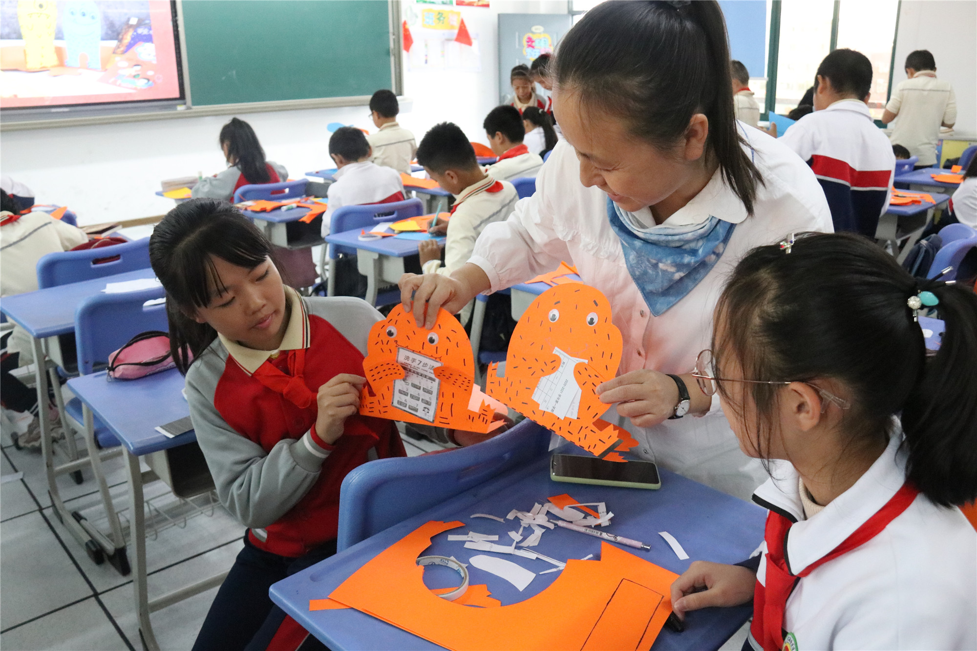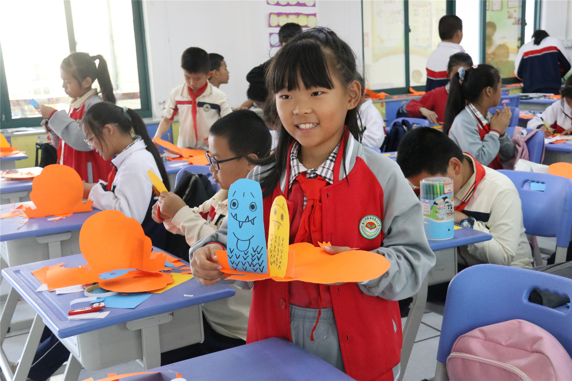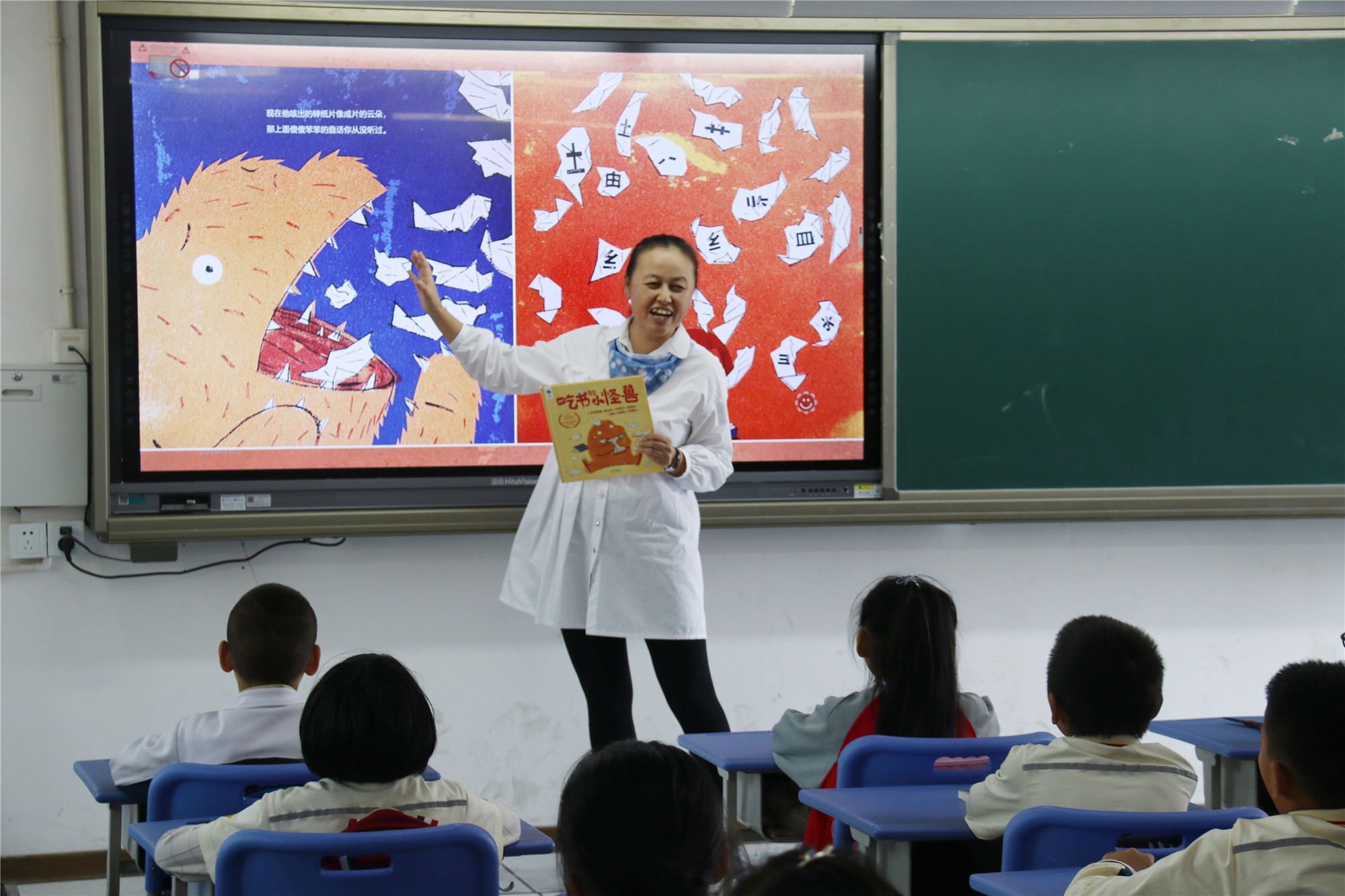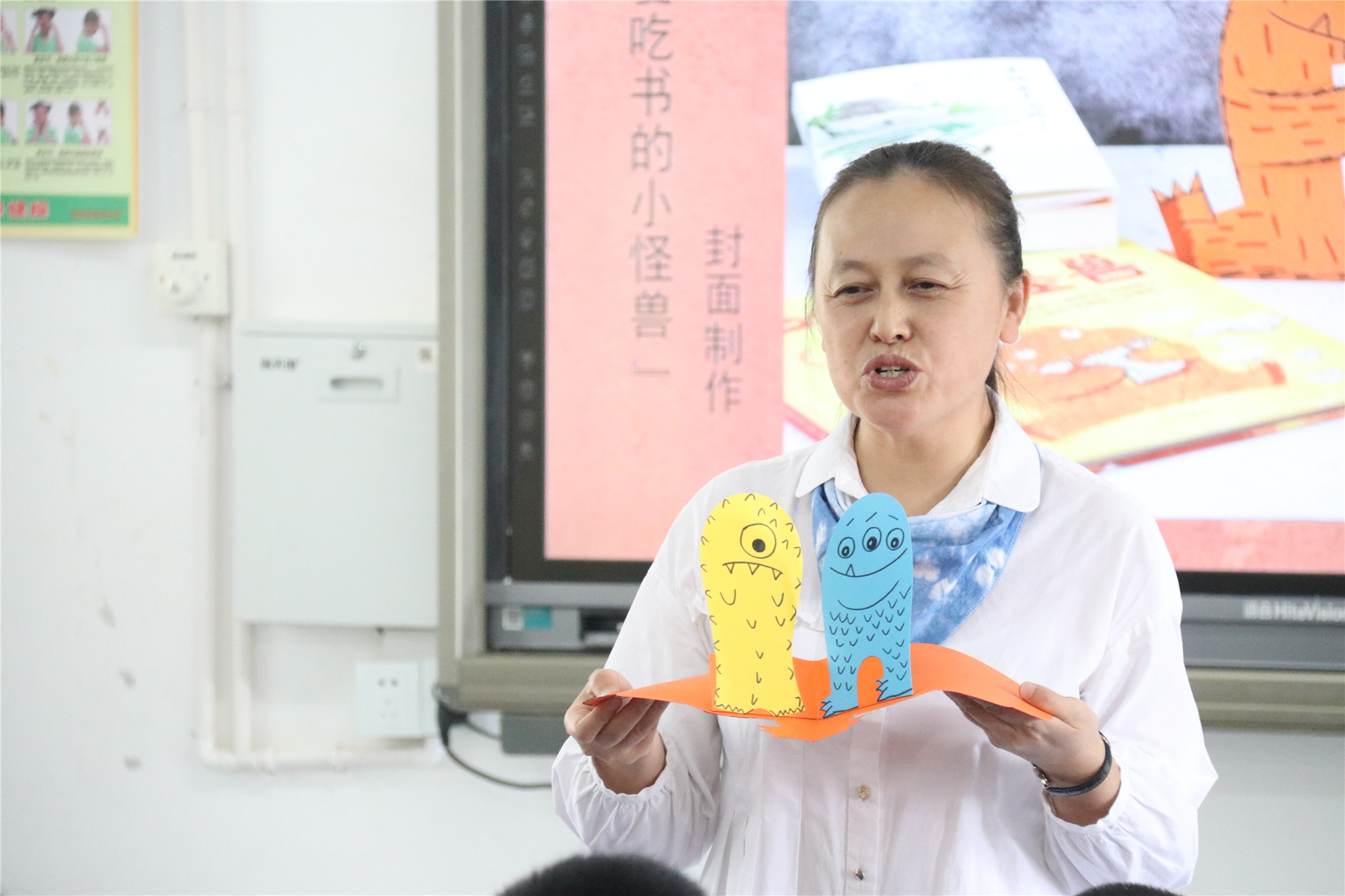 本次的主题是“你是爱吃书的小怪兽吗”,香橼老师首先带来《吃书的小怪兽》这本绘本故事,引导学生们感受书的魅力,进入阅读的世界。智绘书手工环节,香橼老师教小朋友们制作故事中的主人公“爱吃书的小怪兽”智绘书。