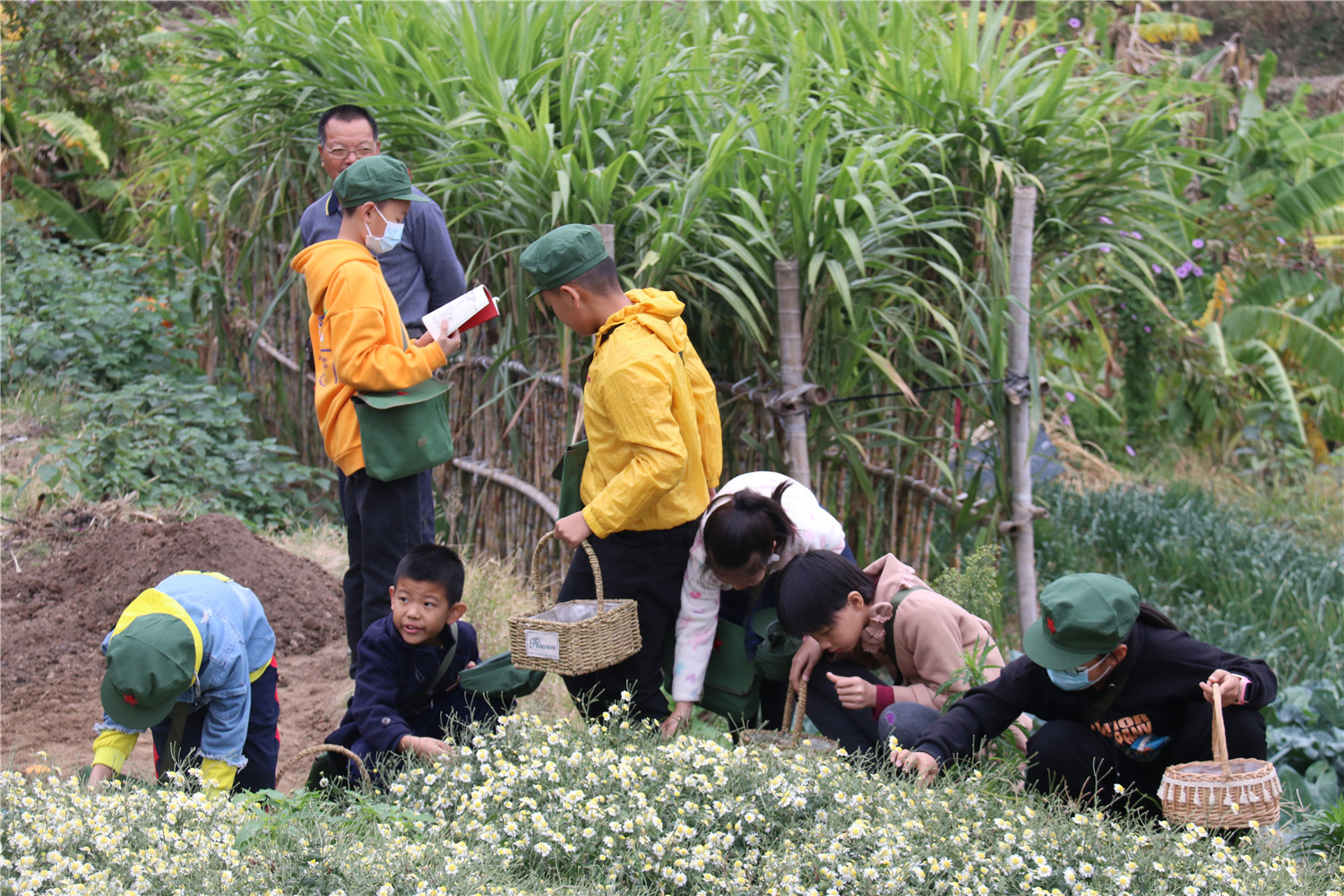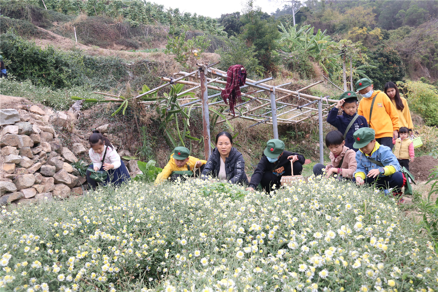 悠然锄山村落地处海拔480米的妙高山山坳,生态环境优美,水土保持良好,日夜温差大,适合优良野菊花生长,锄山菊也因此闻名遐迩。小读者提着小竹篮,与村民共同采菊,切身体验农作的辛苦。