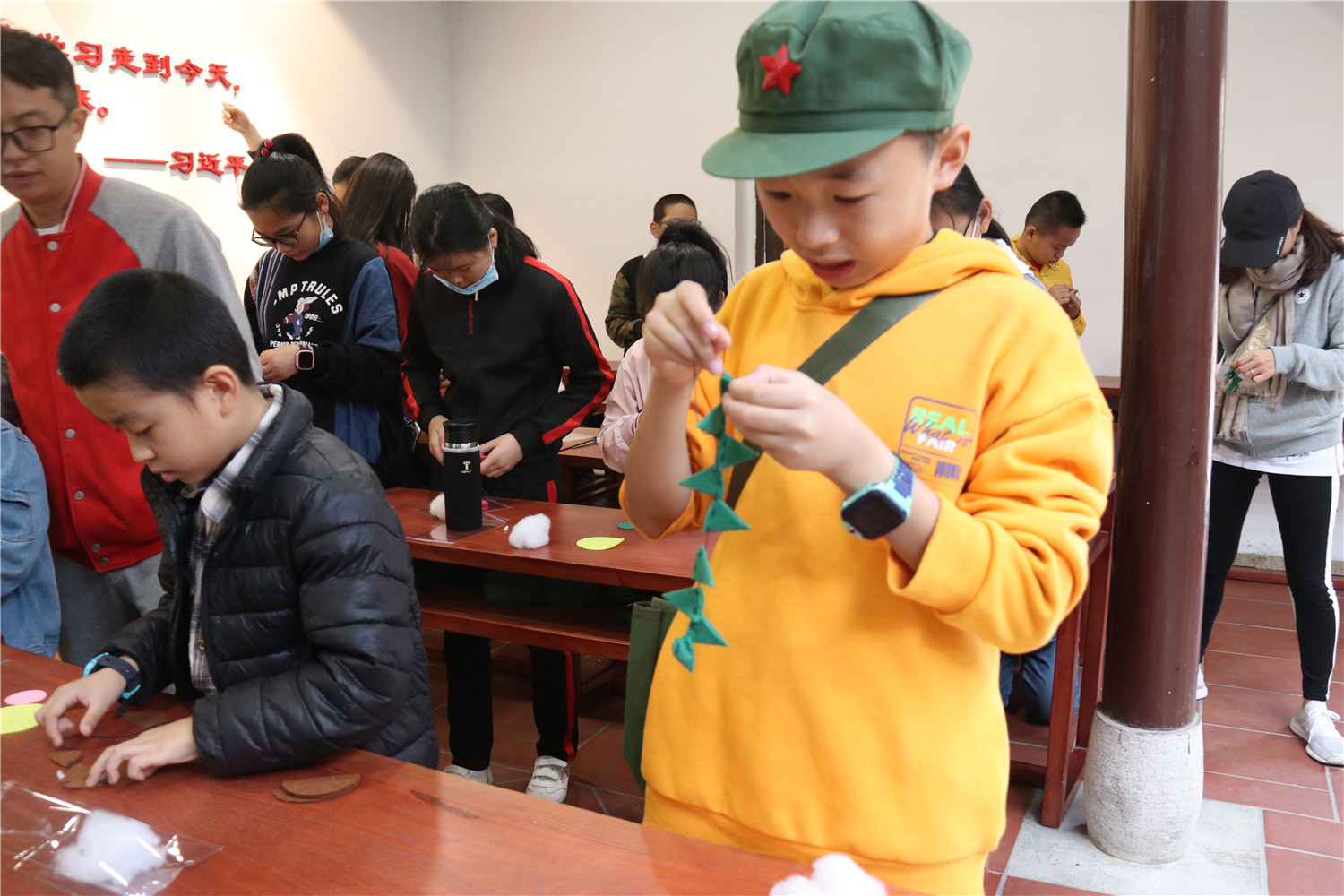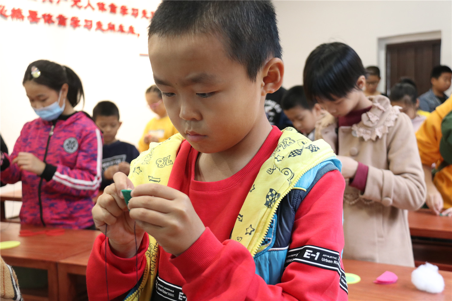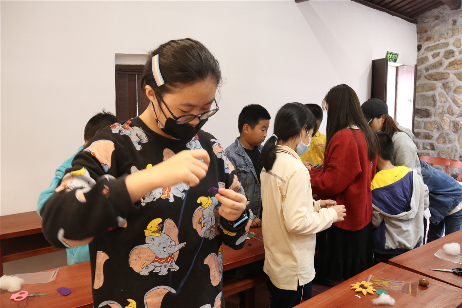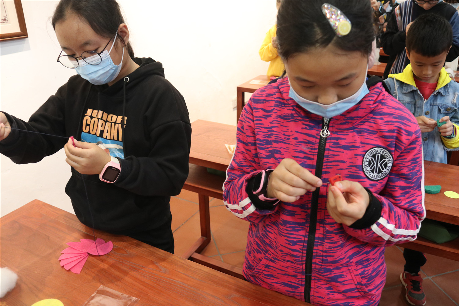 体验过后,小读者们拿起针线,做起布艺菊花,感受了妈妈做针线的辛苦。