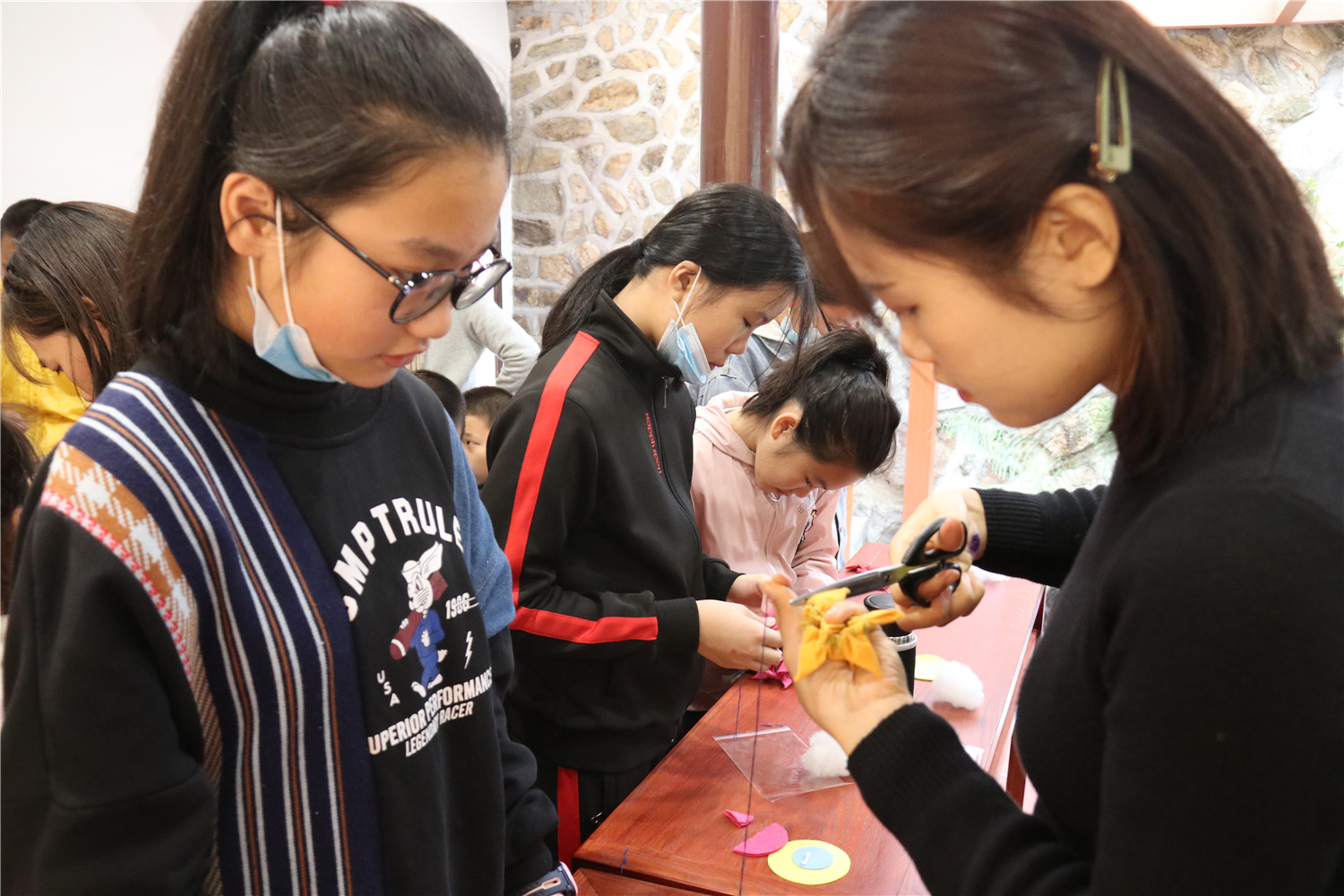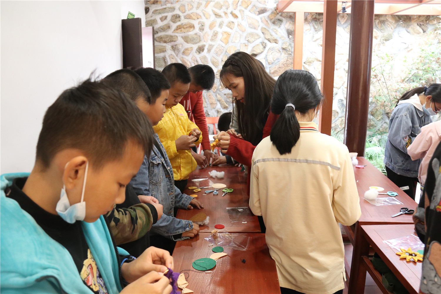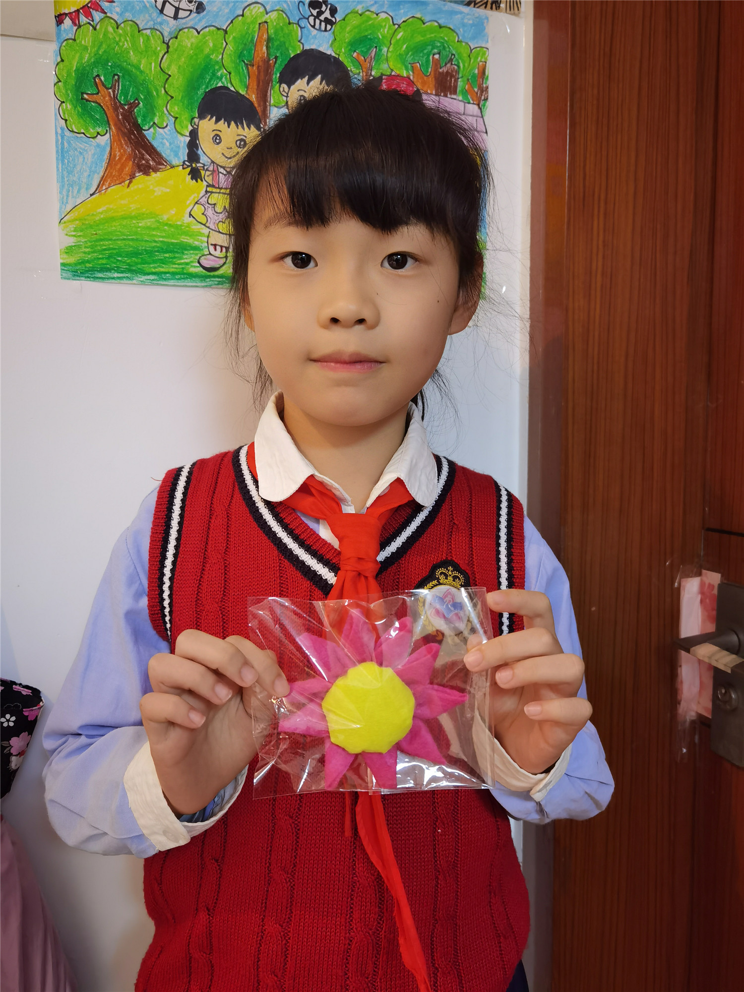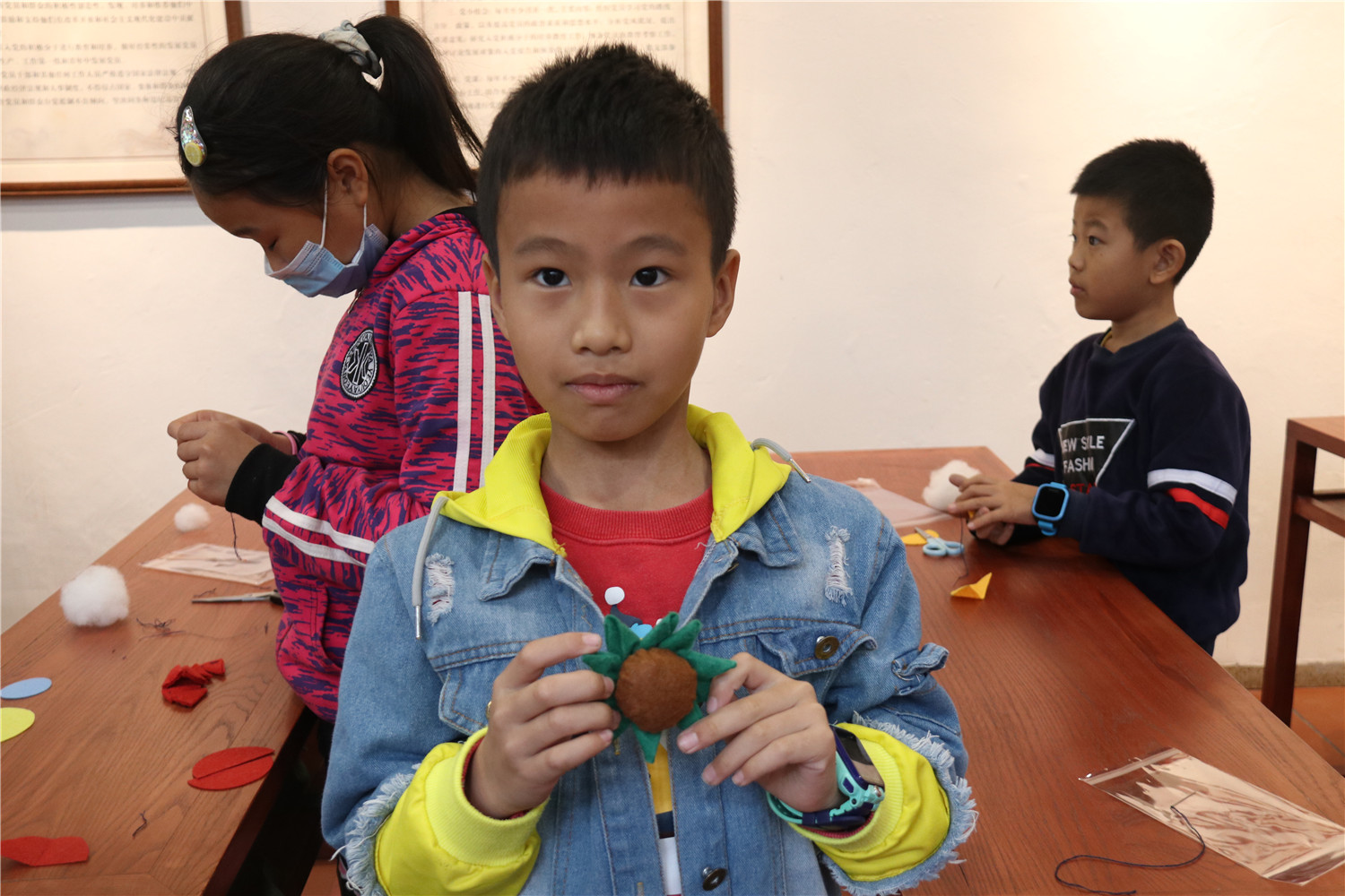 体验过后,小读者们拿起针线,做起布艺菊花,感受了妈妈做针线的辛苦。