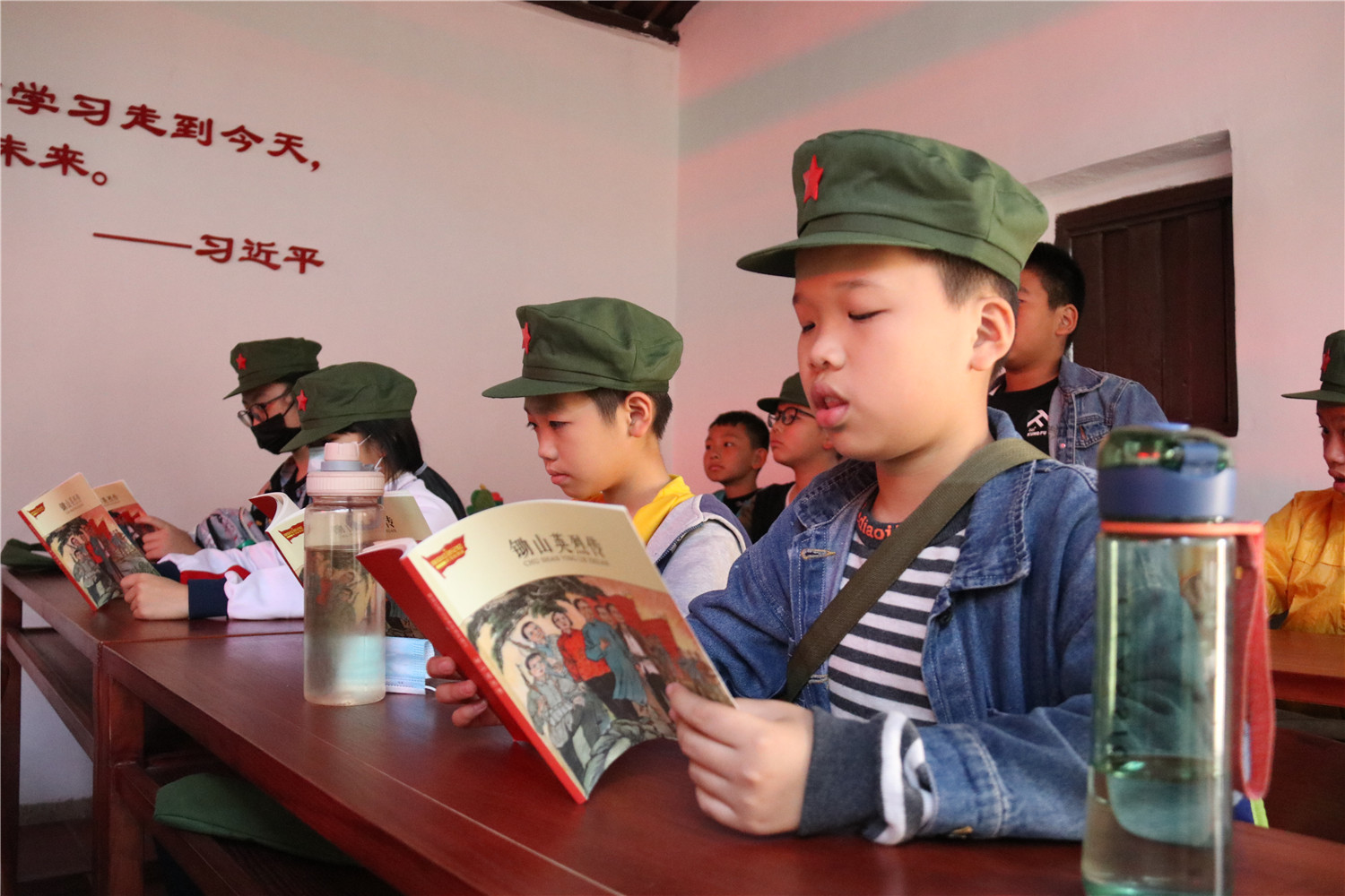 午餐过后,小读者阅读《锄山英烈传》连环画,并在解说员和林淑彬老师的带领下参观了锄山乡村党校及锄山“二十四景”的部分景点。