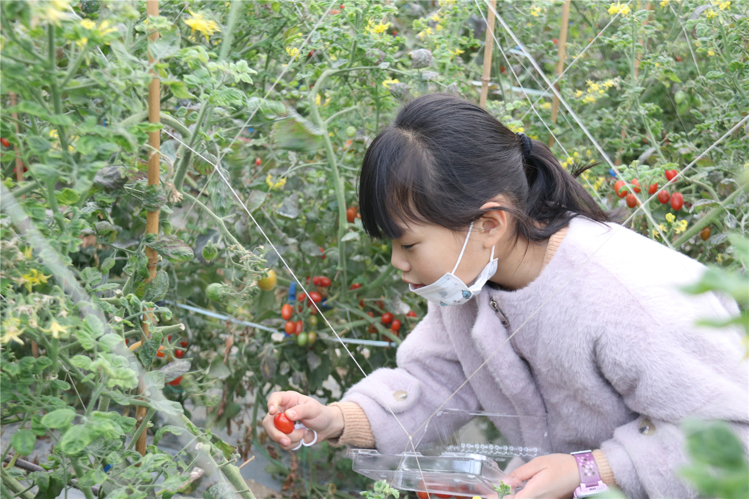 他们还走进了拥有上千亩农田的黄厝村,在栽有树葡萄、青枣、花卉……等农作物的未成年社会实践教育基地,实地观察植物的生长环境,体验农耕文化。通过付出劳动,采摘圣女果,感受丰收的喜悦以及食物的来之不易,培养孩子们的劳动技能,锻炼青少年的身体素质,提升他们的动手能力和生存技能。