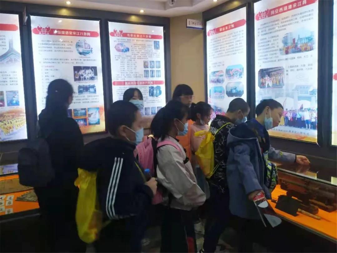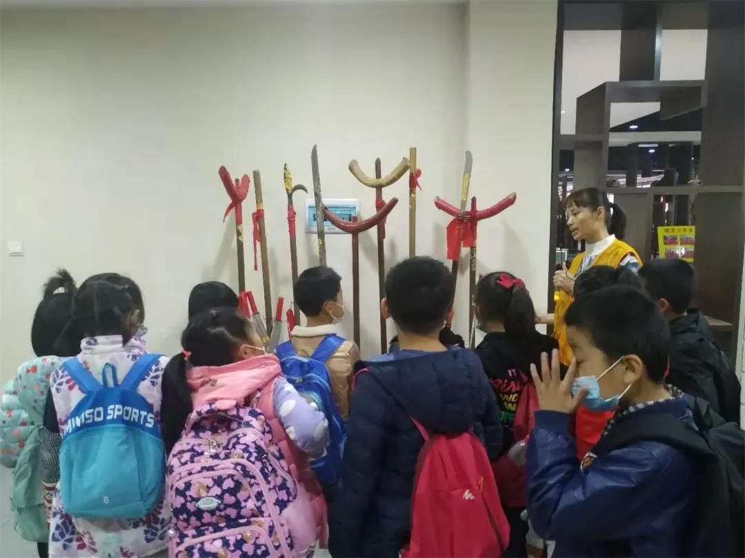 社工志愿者首先带领着小读者们参观了宋江阵文化博物馆,对于家门口的博物馆,好多小读者只听过,还未亲身参观过。参观过程中时不时传来了惊叹声。