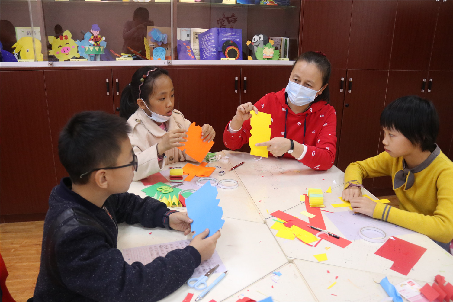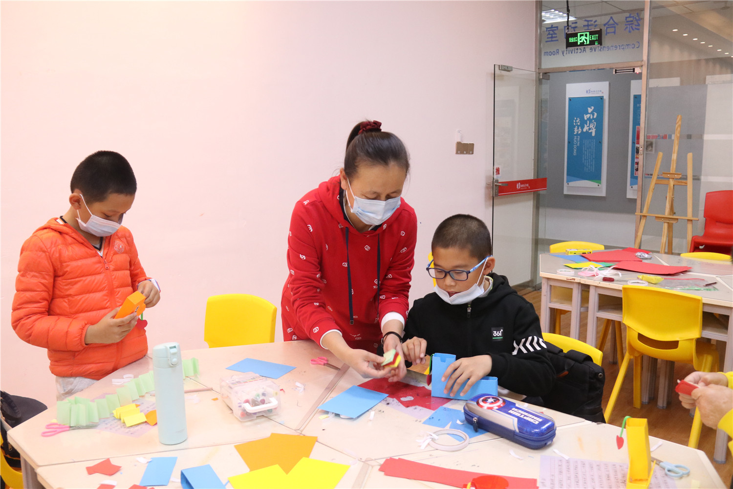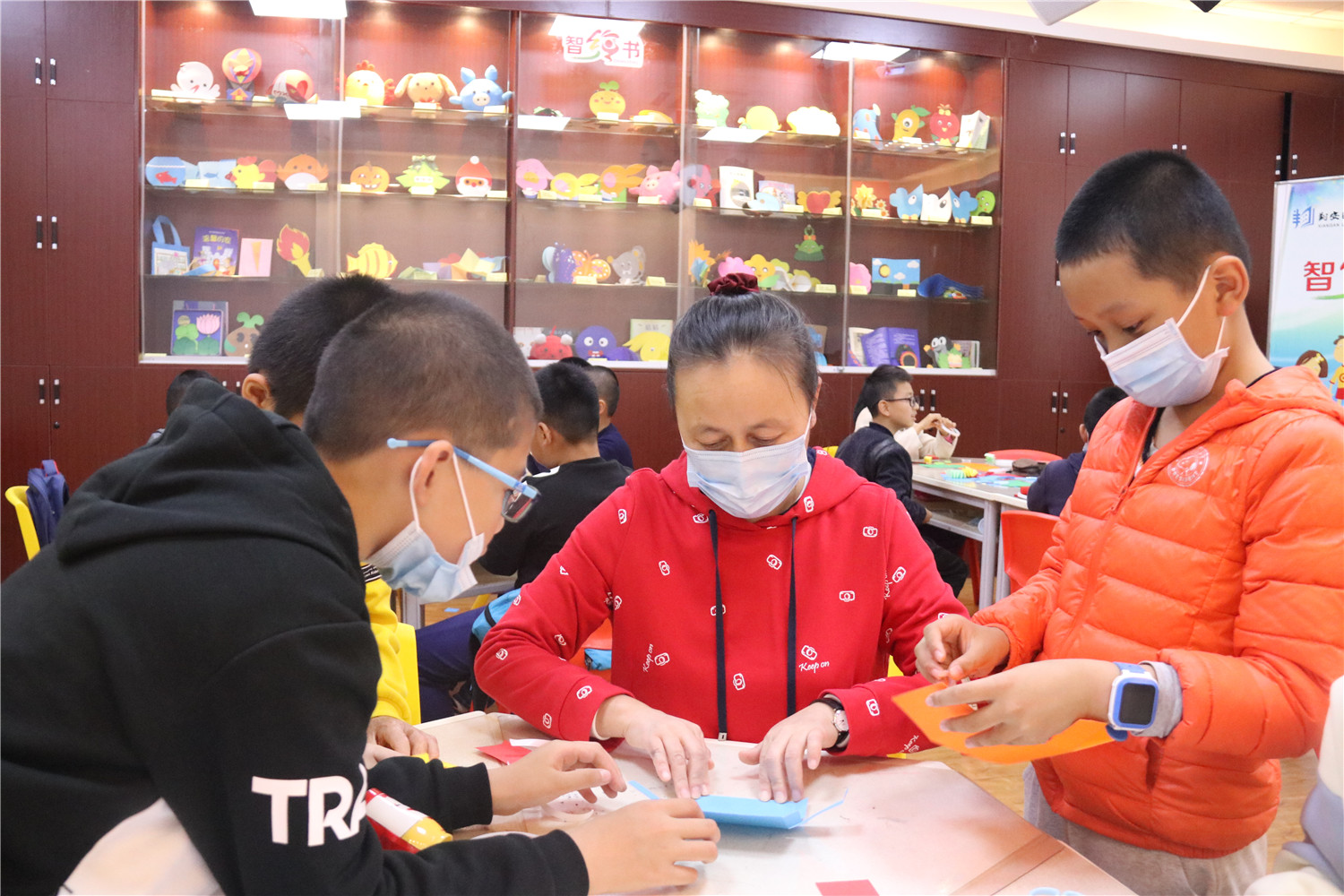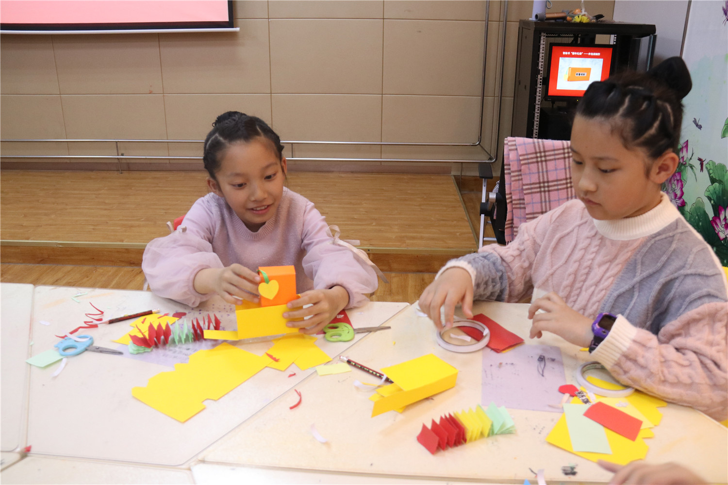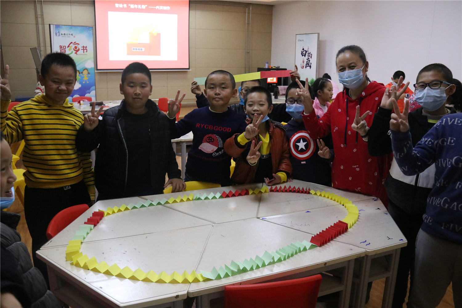 手工书制作环节,老师指导他们制作立体“新年礼物”智绘书。