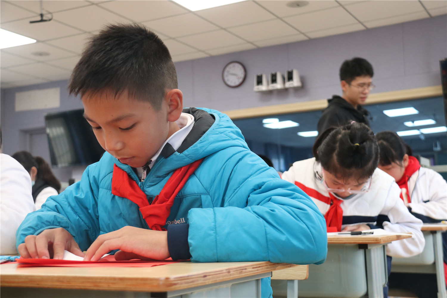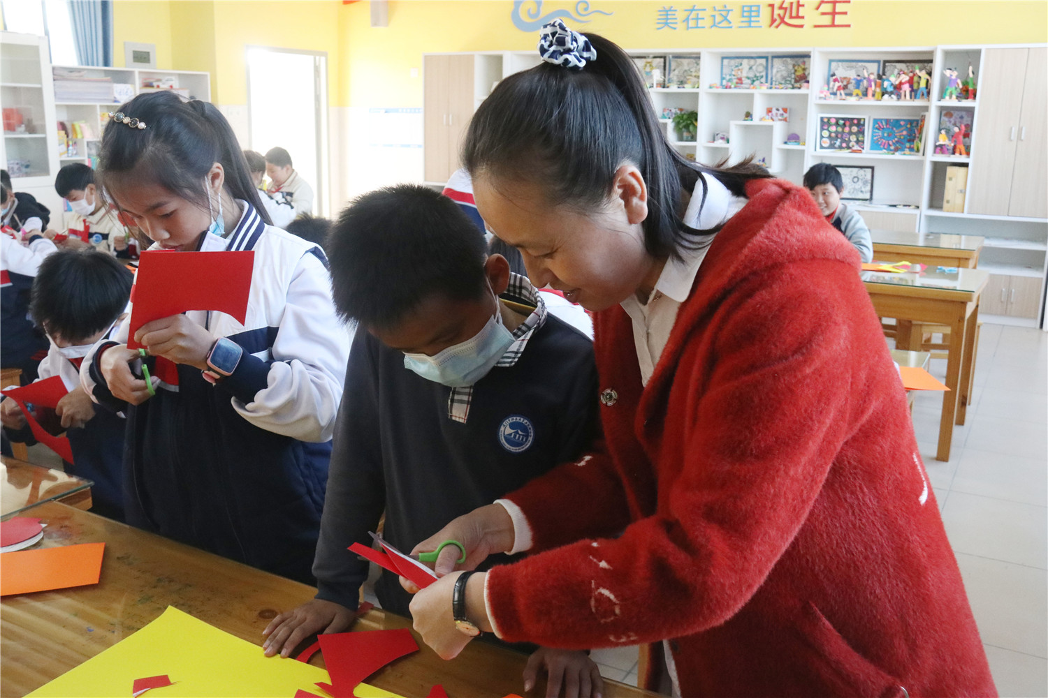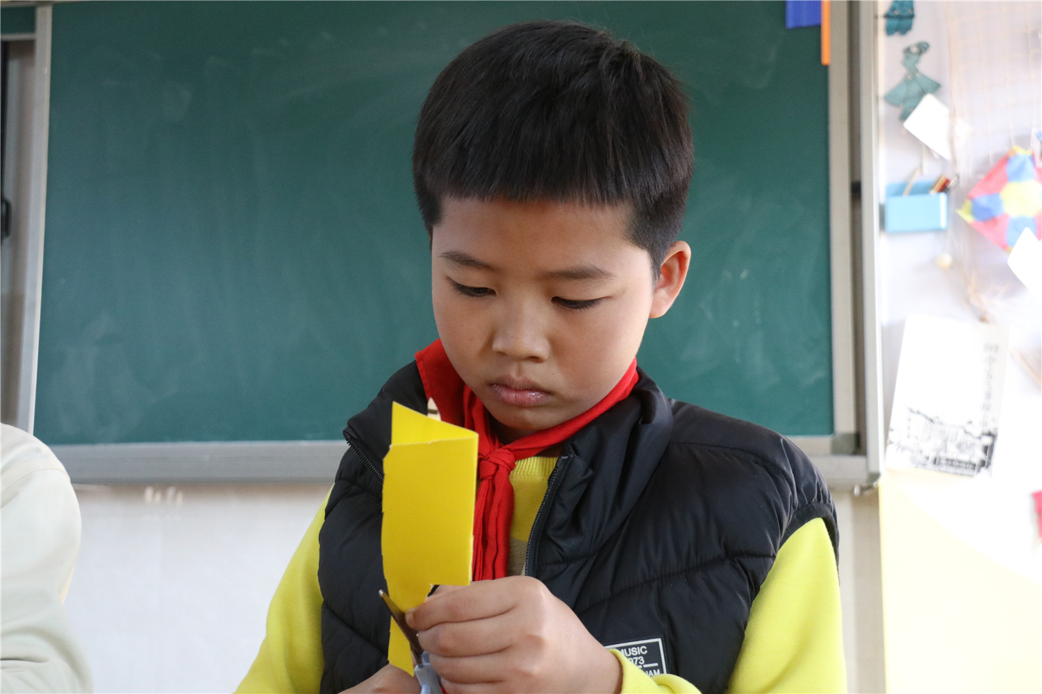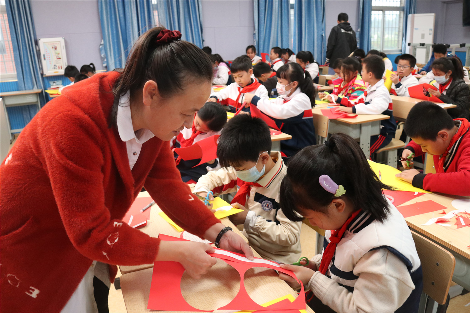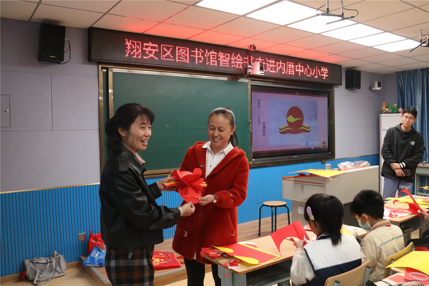 手工书制作环节,老师指导他们制作立体“新年礼物”智绘书。
