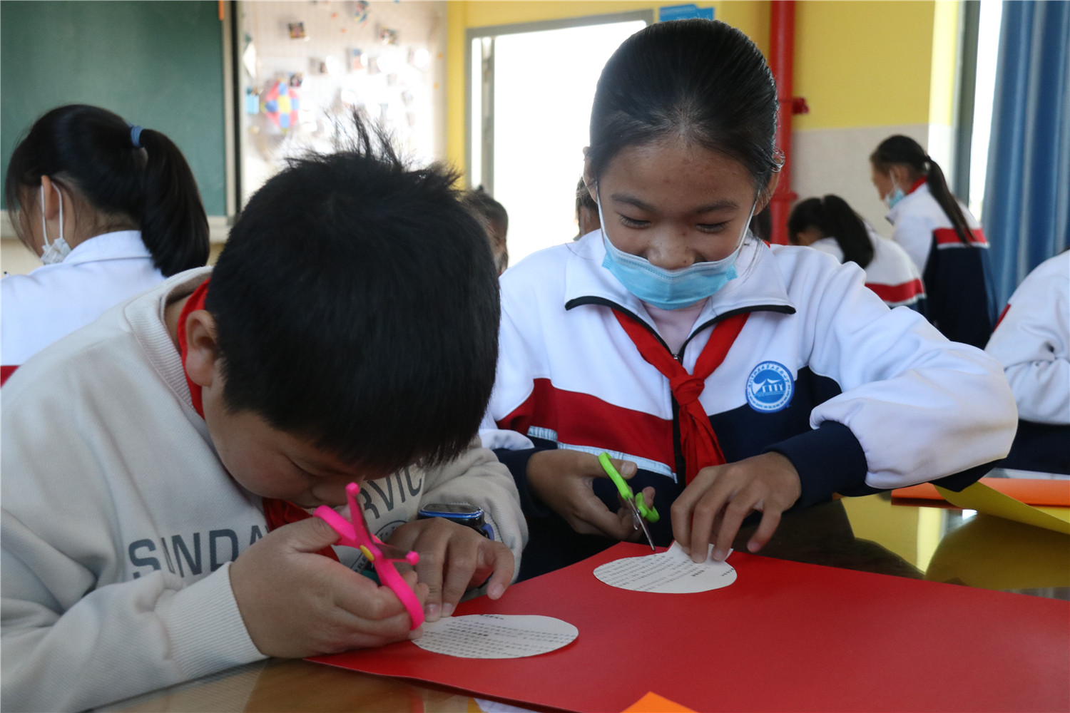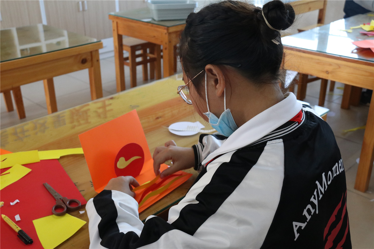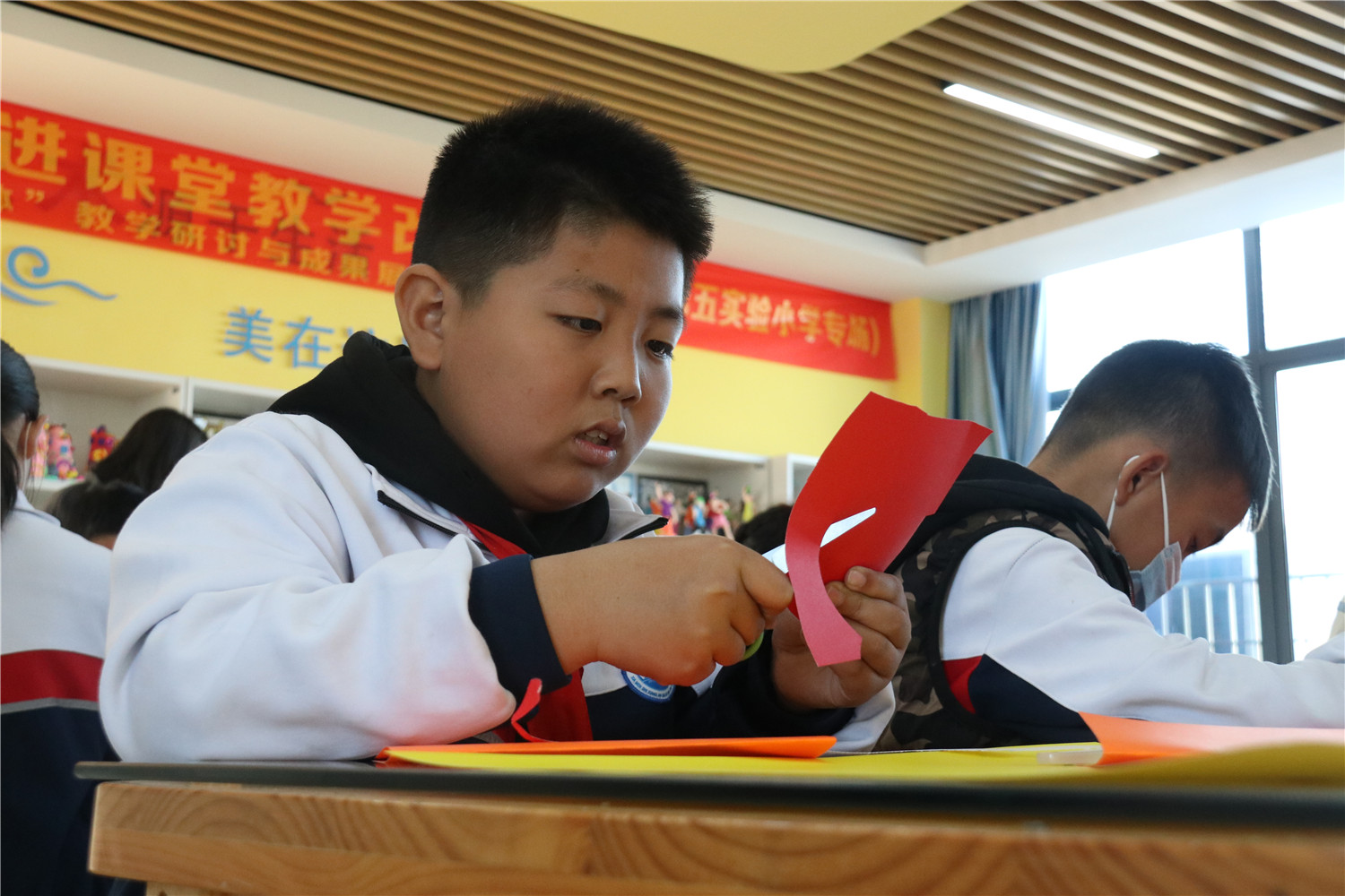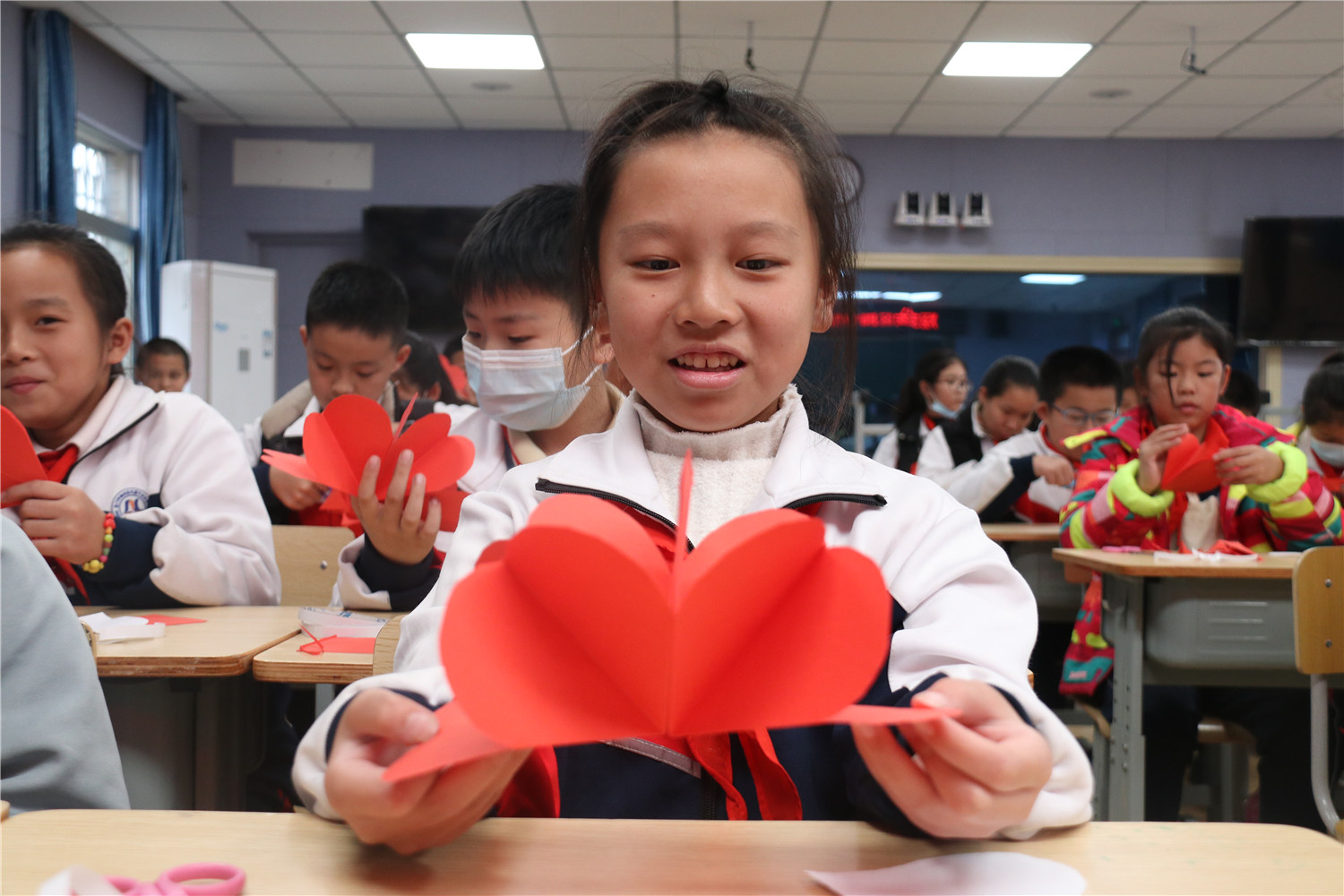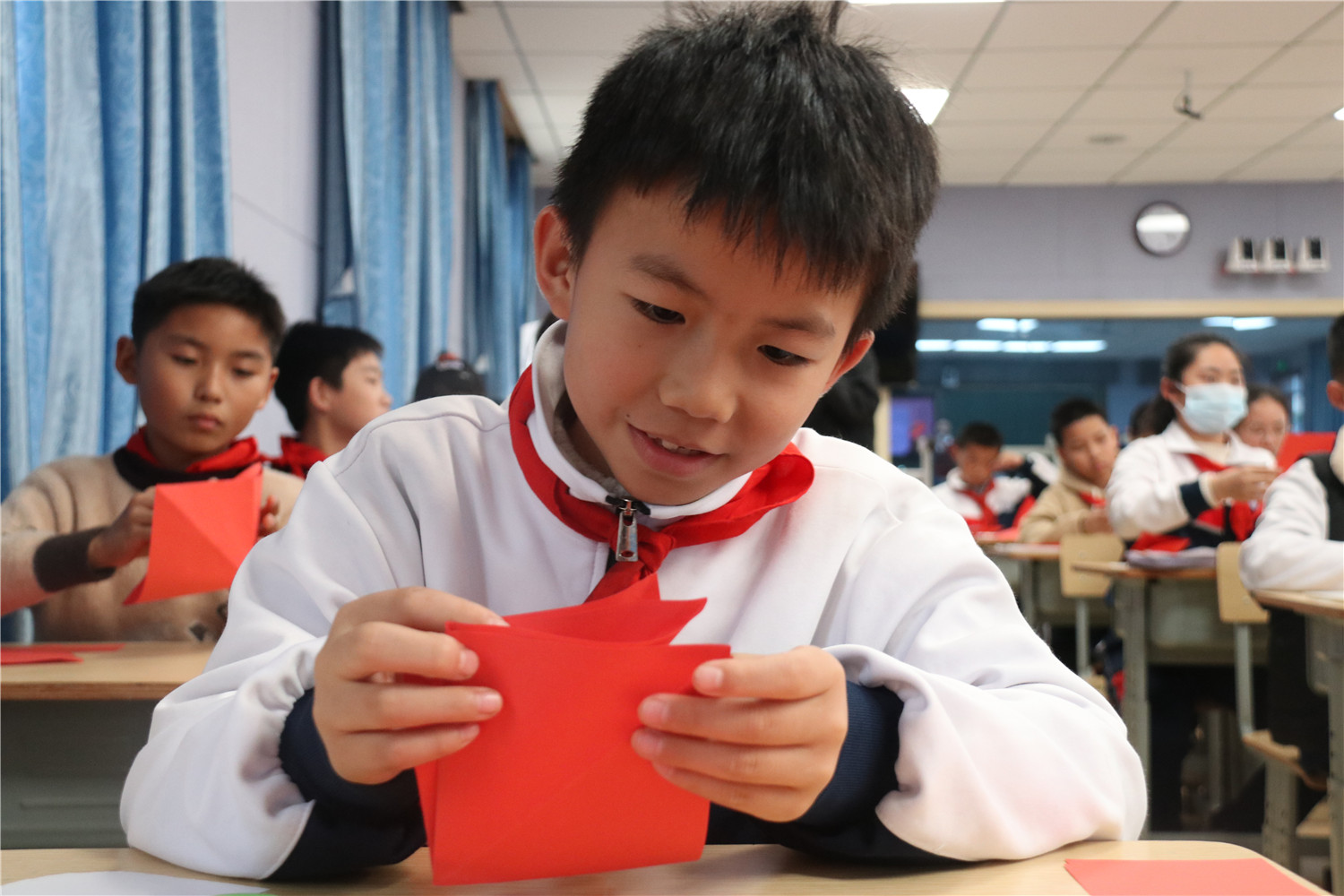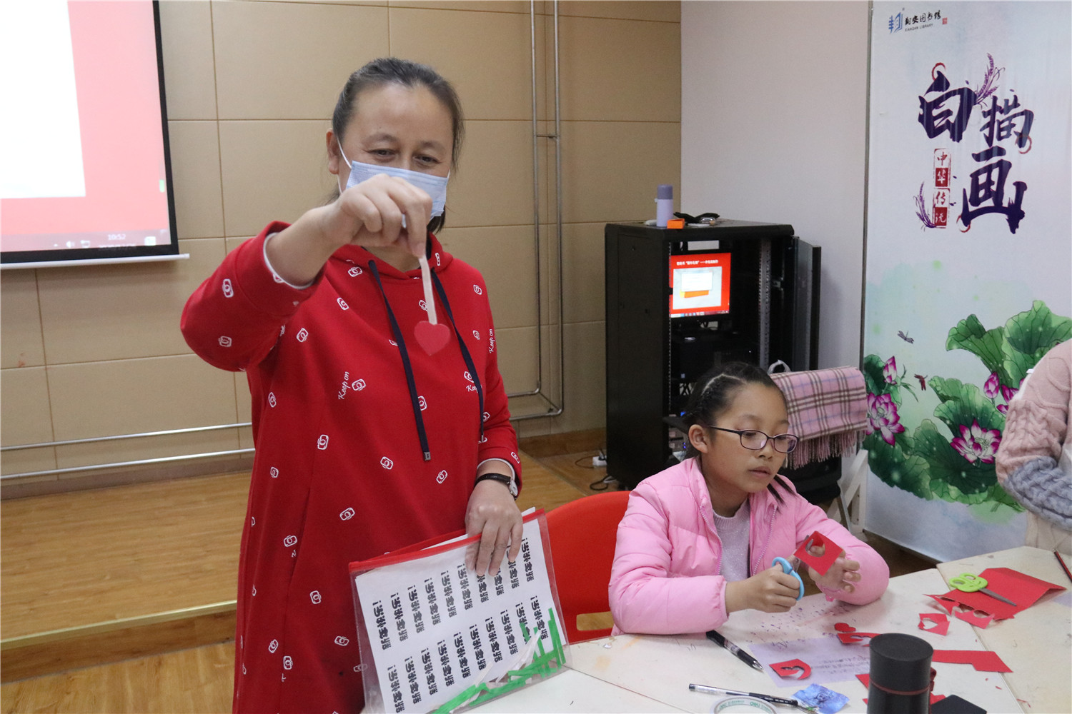 手工书制作环节,老师指导他们制作立体“新年礼物”智绘书。