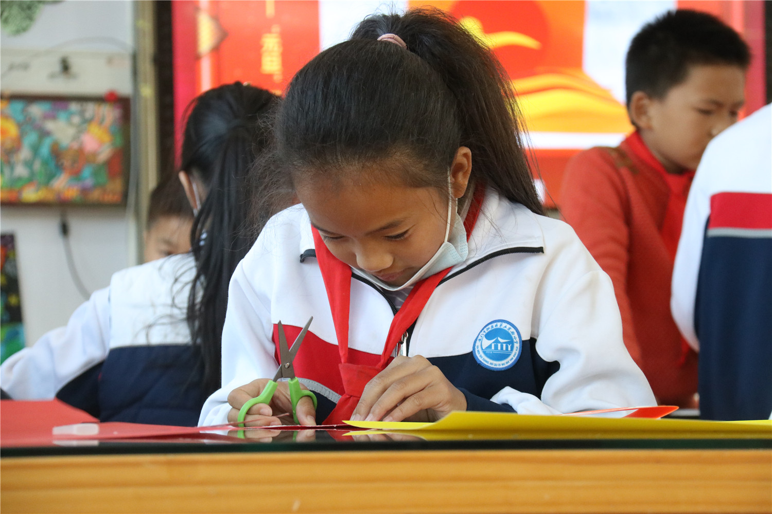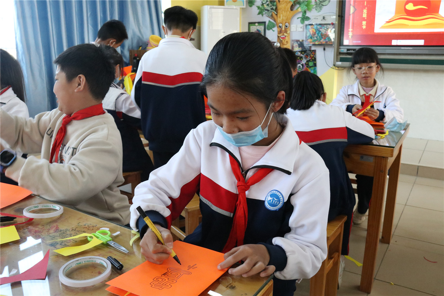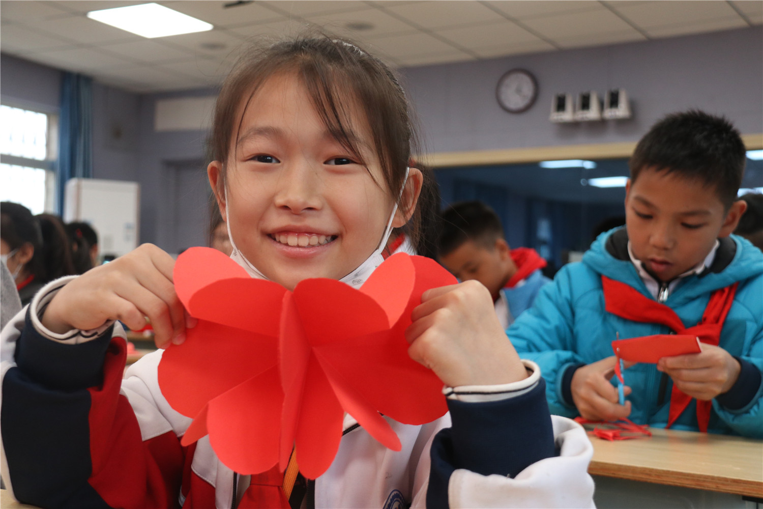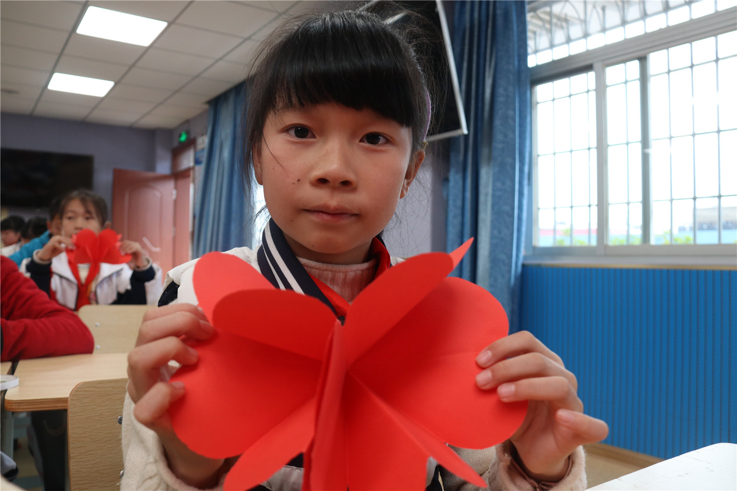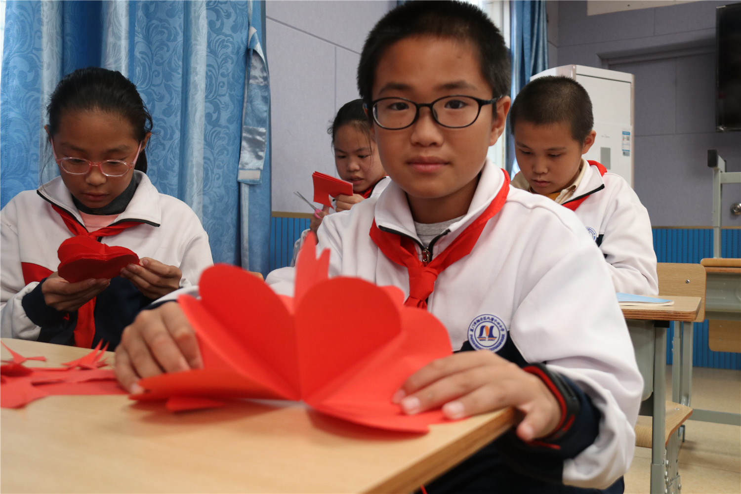 手工书制作环节,老师指导他们制作立体“新年礼物”智绘书。