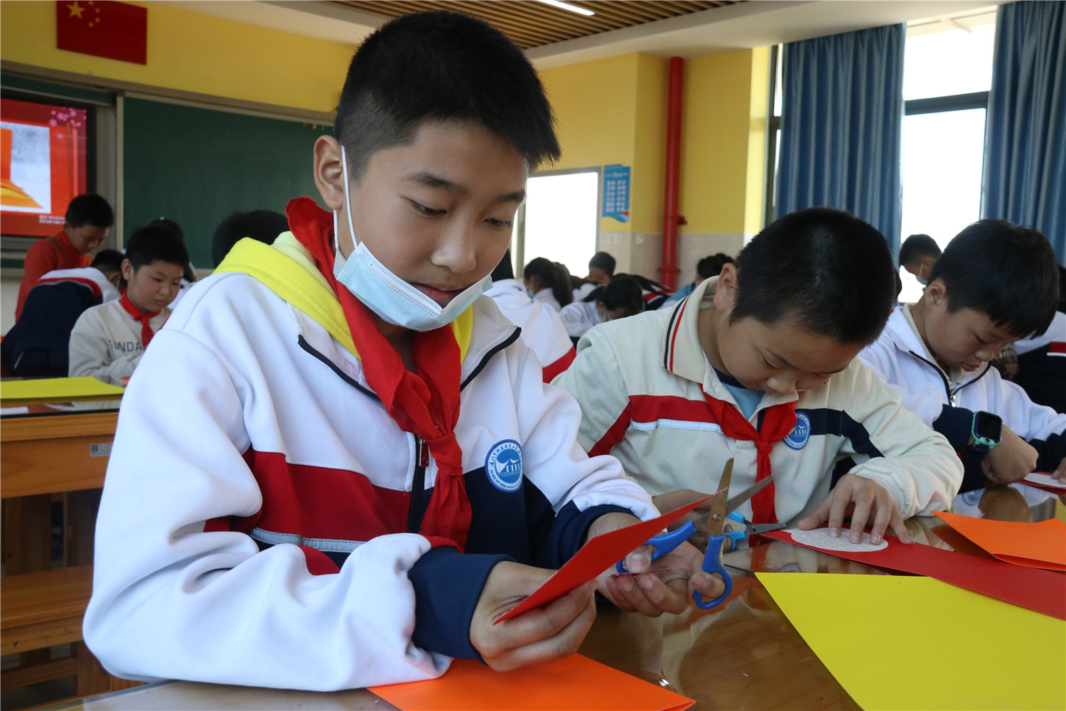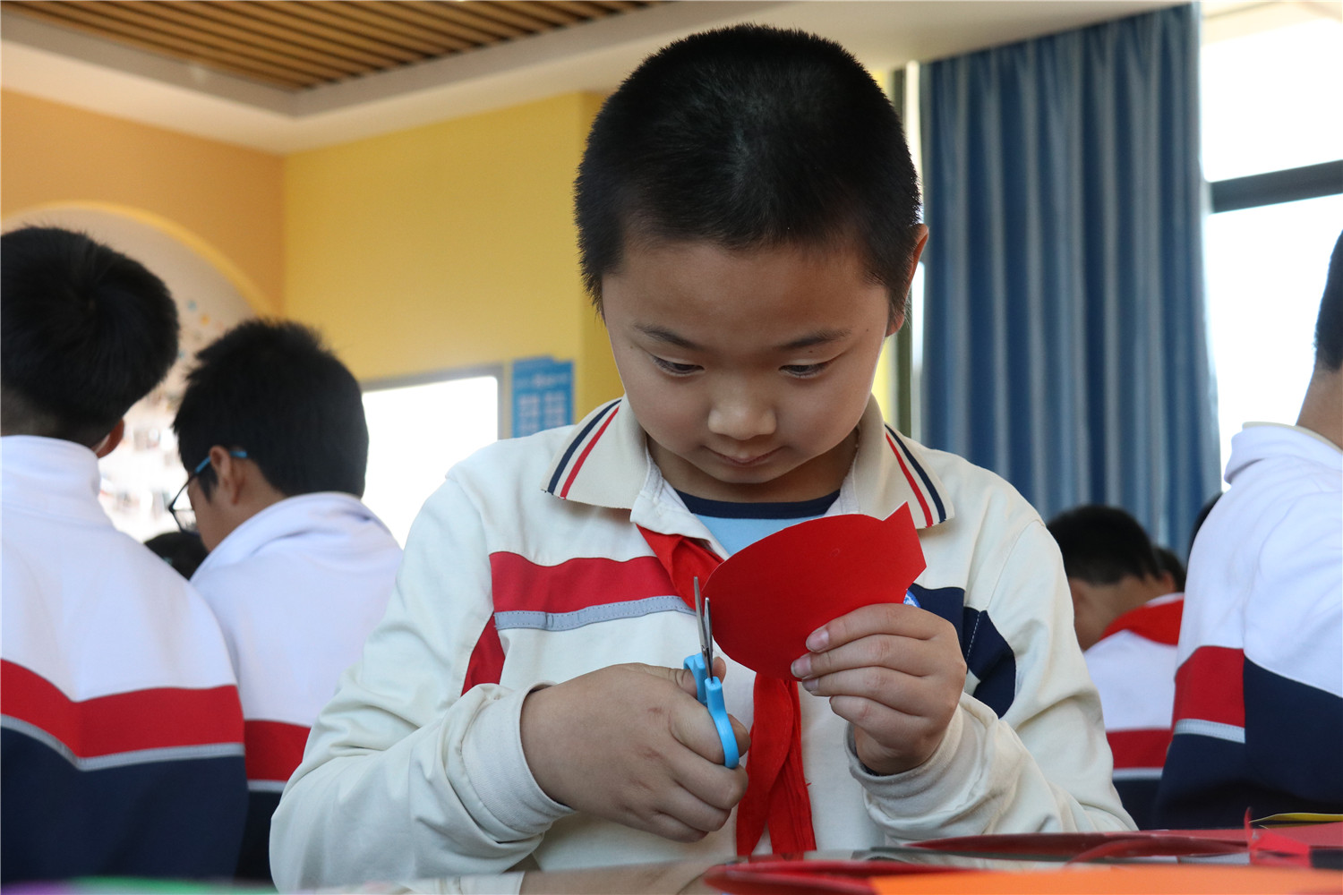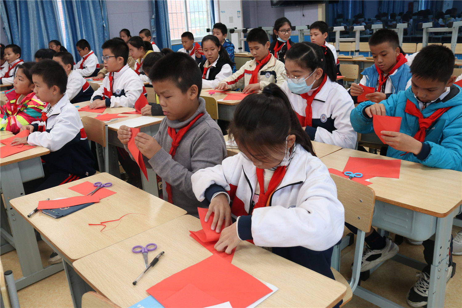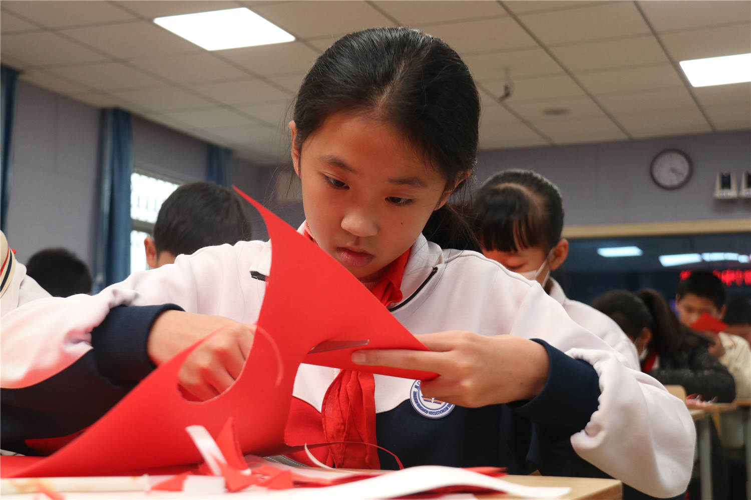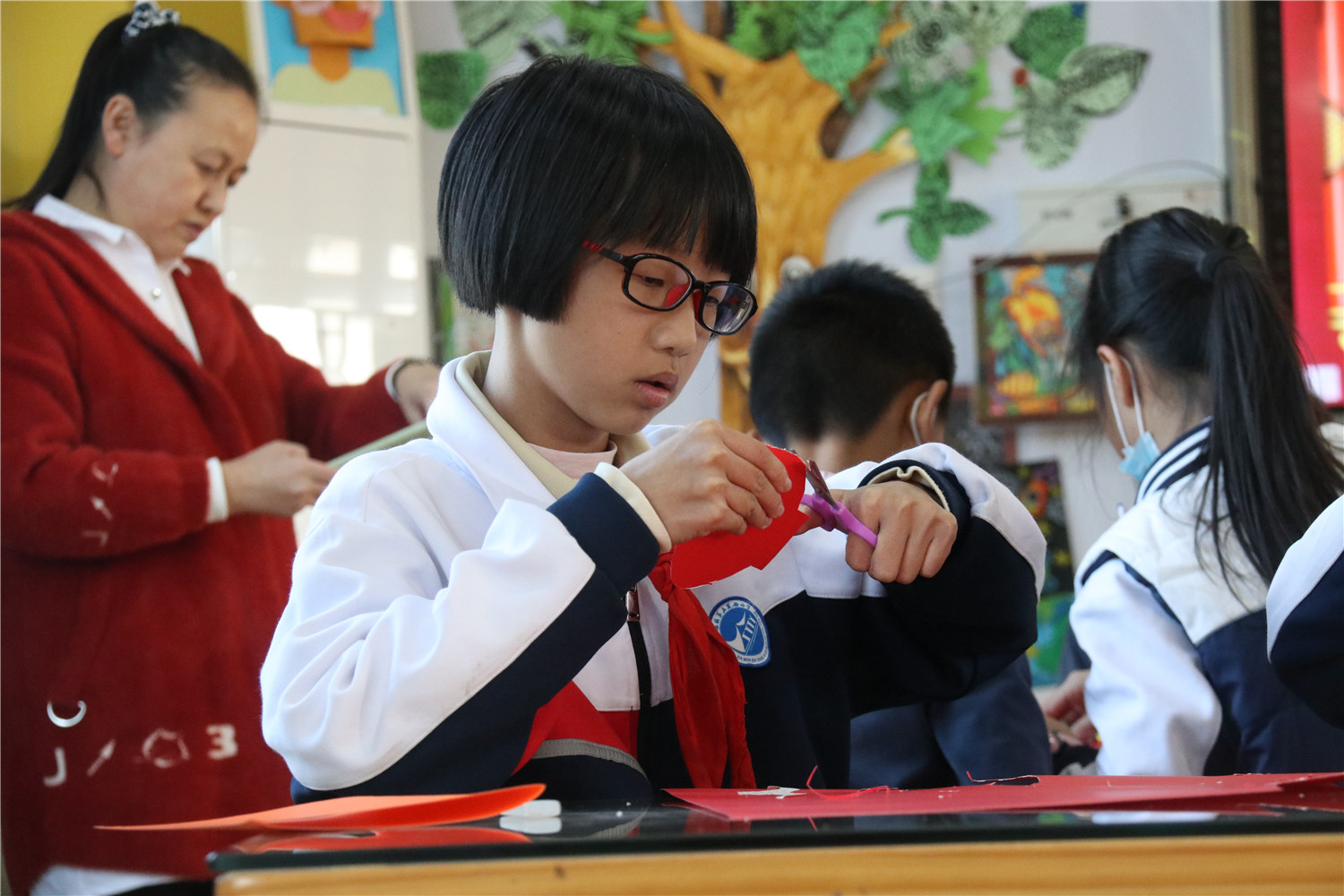 手工书制作环节,老师指导他们制作立体“新年礼物”智绘书。