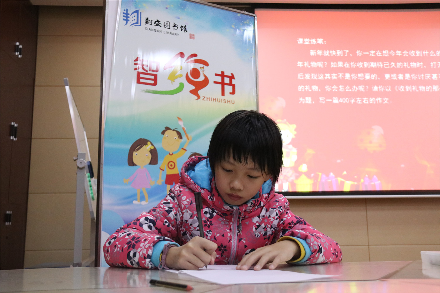 而后老师和小读者们共读了《礼物》绘本故事,并进行作文《收到礼物的那一刻》和题目自拟的练笔,老师还对他们的作文做了现场批改和点评。