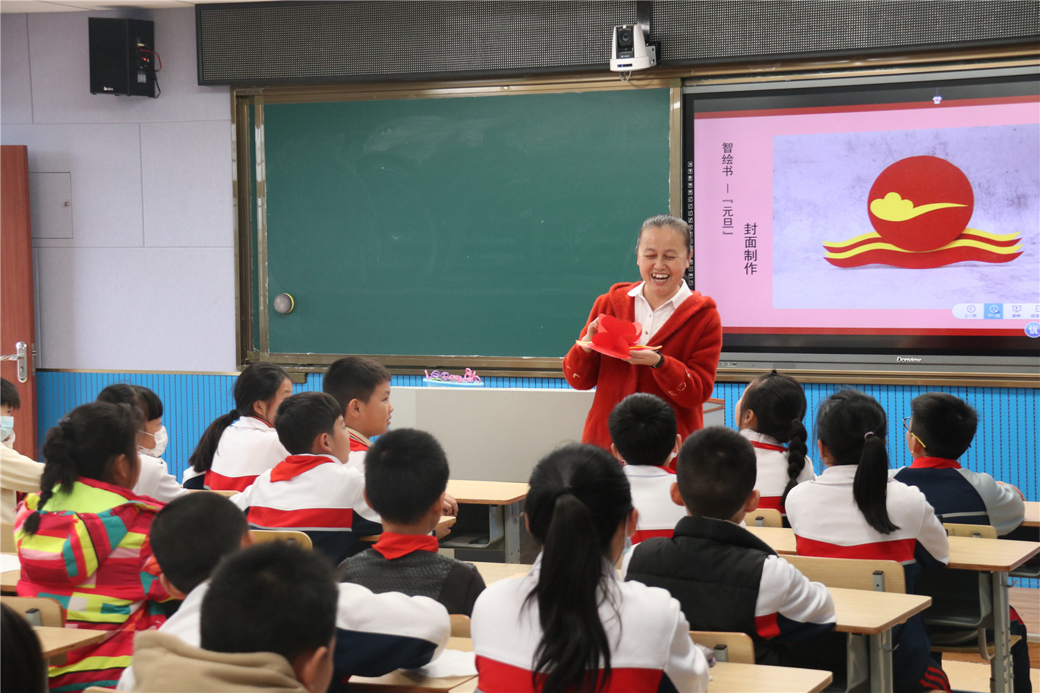 本期“智绘书”活动主题是“一岁节序此为首 万象更新正当时”,香橼老师首先介绍了元旦的由来,与学生们一起鉴赏中国古代诗中有关于“元旦”记载,并引导他们讨论各自家乡元旦的习俗。智绘书手工环节,香橼老师教小朋友们制作“元旦”贺卡智绘书。
