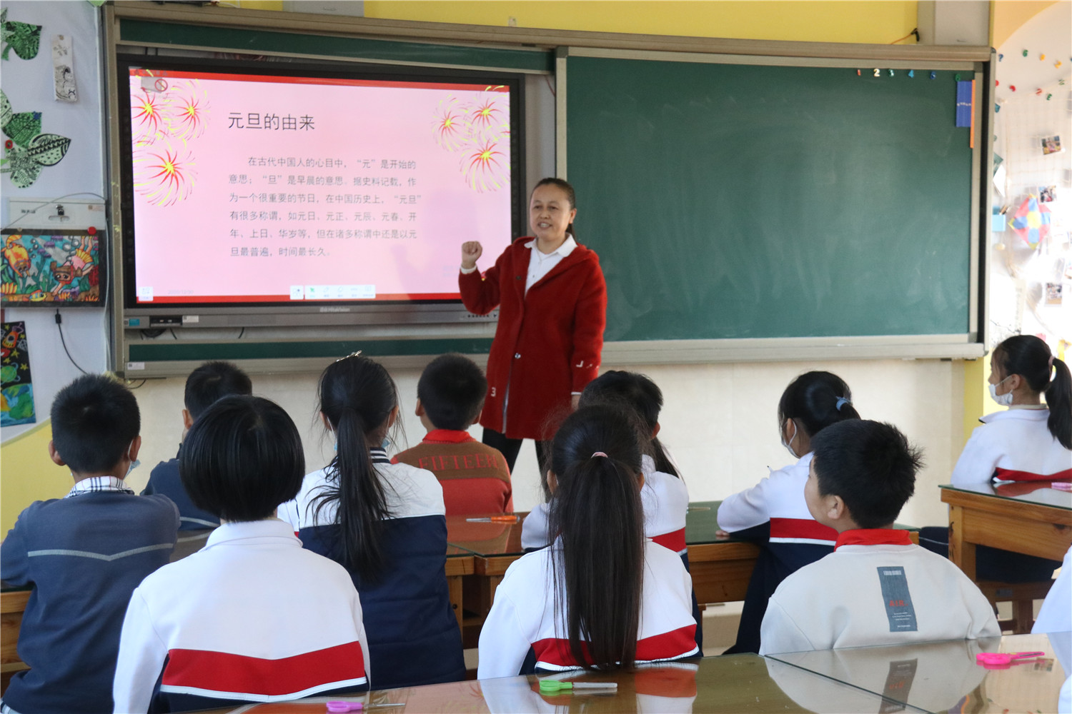 本期“智绘书”活动主题是“新年礼物,你收到了吗?”,香橼老师首先和学生合唱《新年好》并介绍元旦的由来及古诗欣赏。