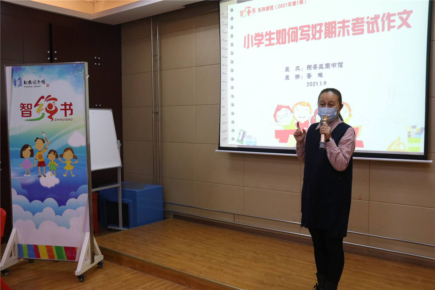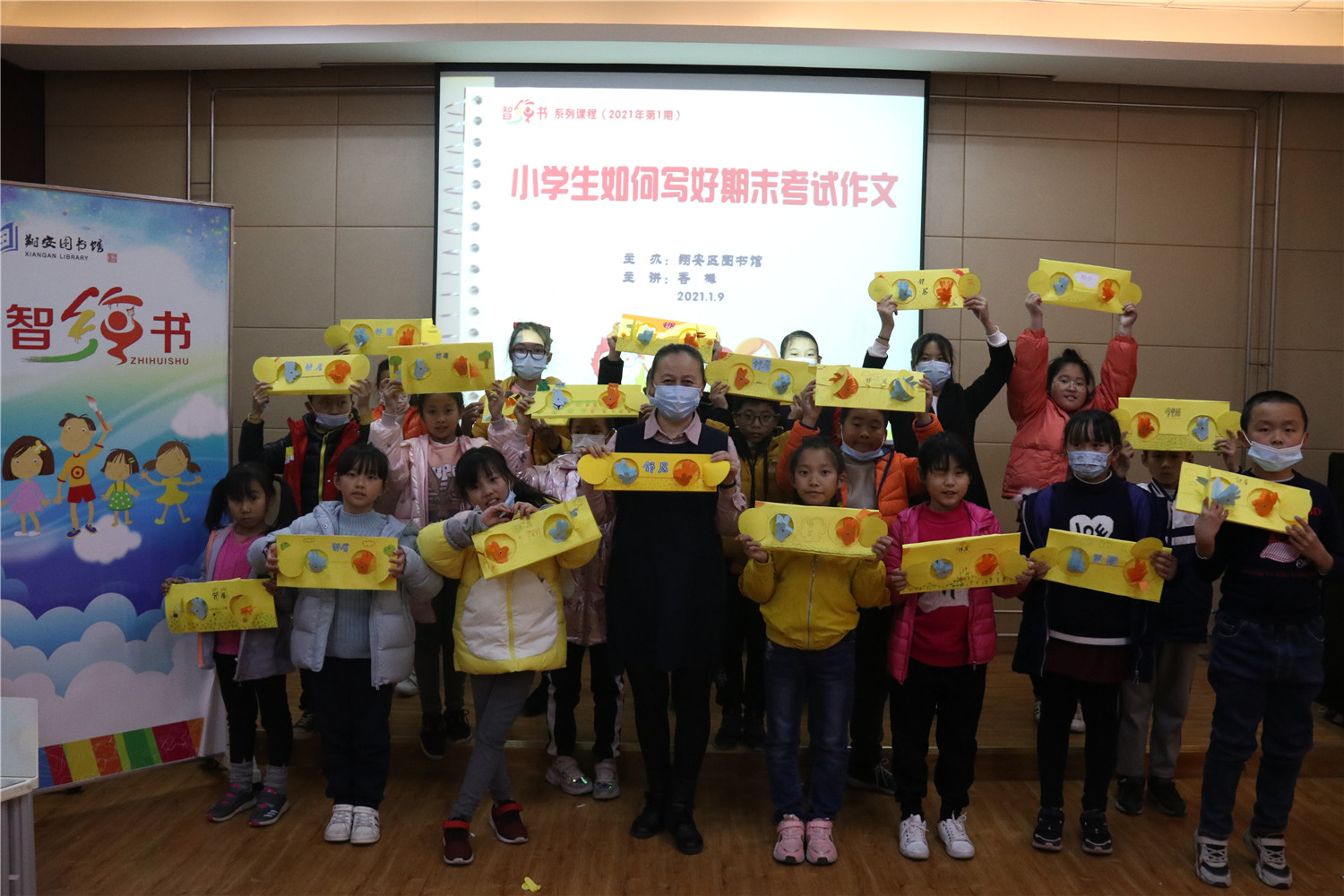 1月9日,翔安区图书馆邀请了福建省作家协会会员、编剧、儿童文学作家香橼老师为小读者们举办智绘书——“小学生如何写好期末考试作文”活动。