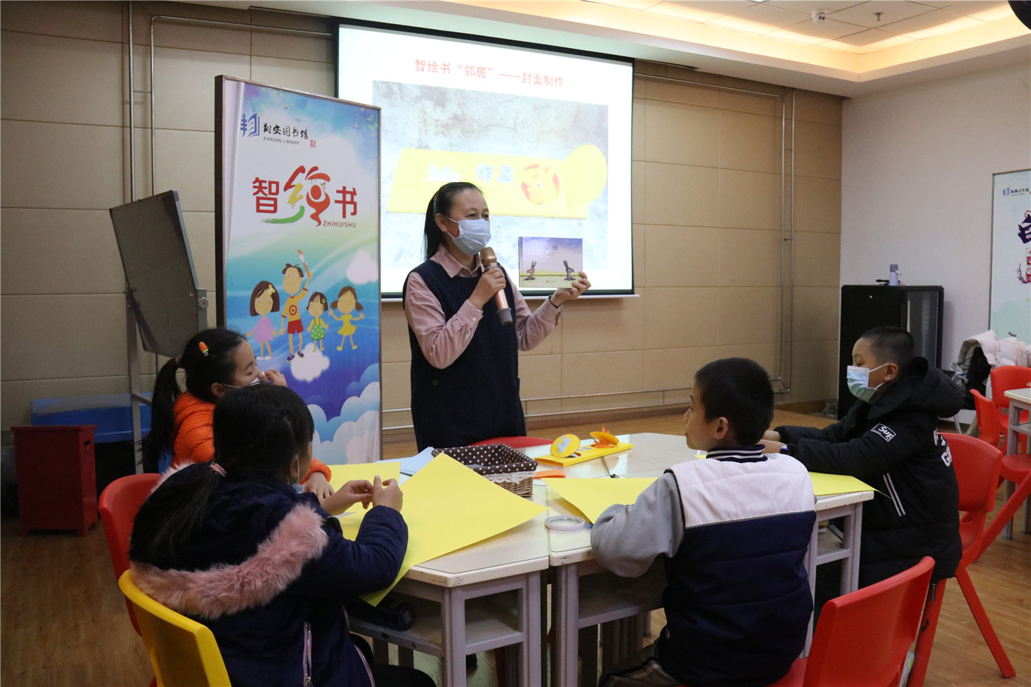 手工书制作环节,老师指导他们制作立体“邻居”智绘书。