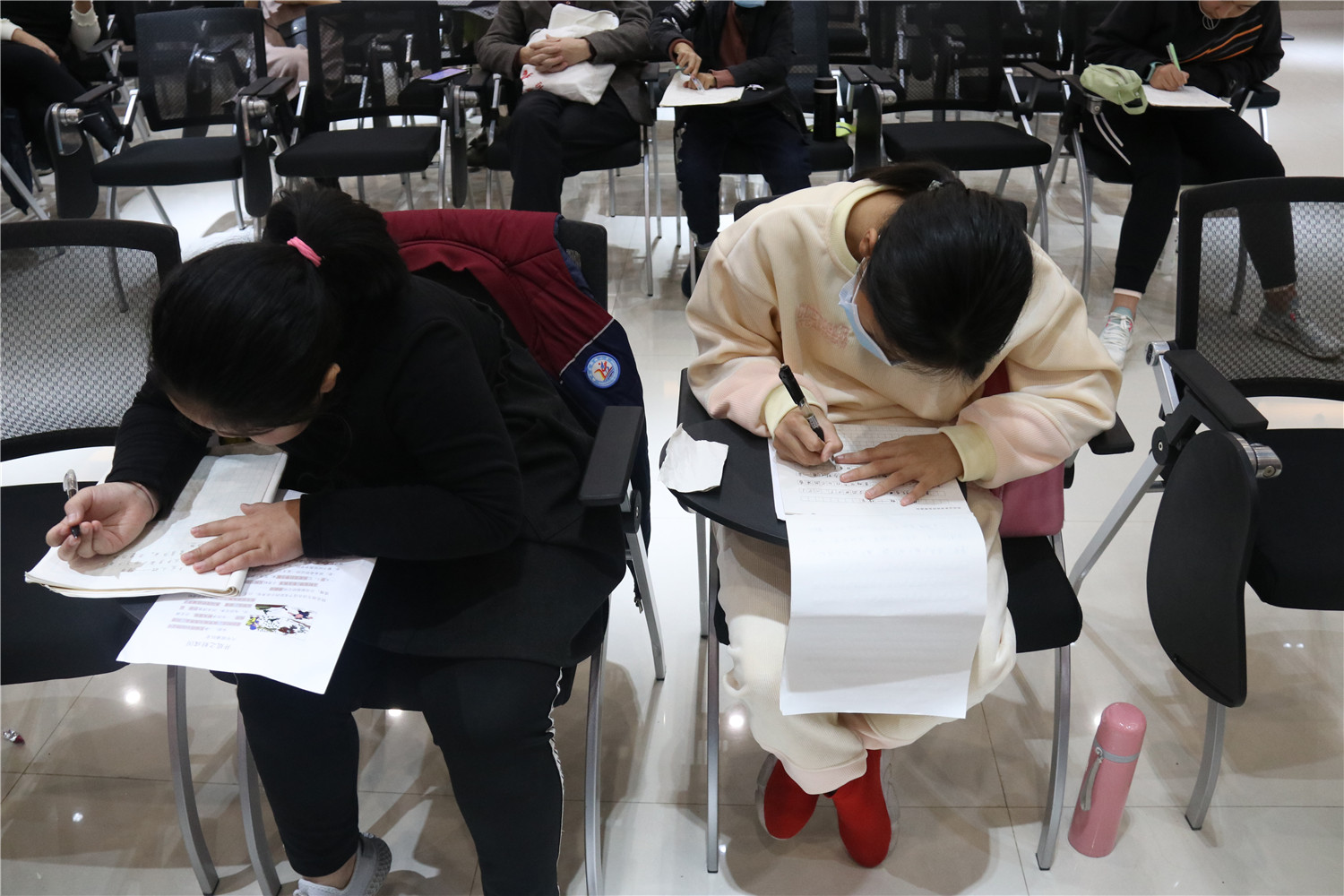 课堂上老师向小读者们和家长们教授了写作知识,同时让他们现场练习。老师还向他们推荐了阅读书目,并指导阅读。
