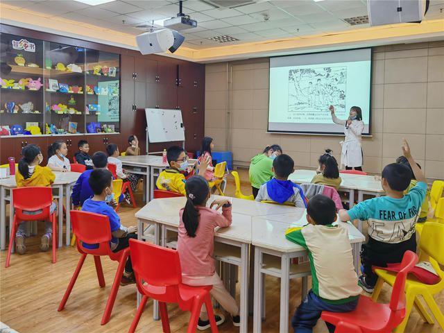 趣味问答环节,小读者们踊跃举手,积极发言,分享自己的答案,唱歌、游戏,趣味十足。