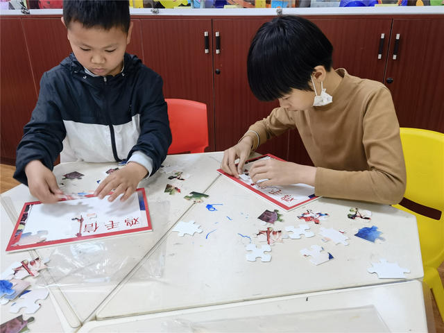 “连环巧手拼”环节,一起为《鸡毛信》拼图。先完成的读者还主动帮助其他人呢!