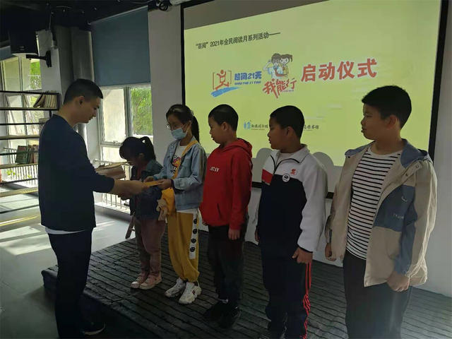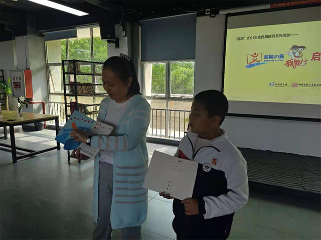 活动一开始,新三岛图书馆负责人给参与活动的读者颁发超阅21天笔记本和阅读卡并宣布超阅21天启动。