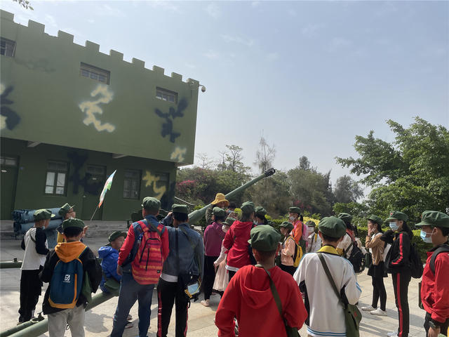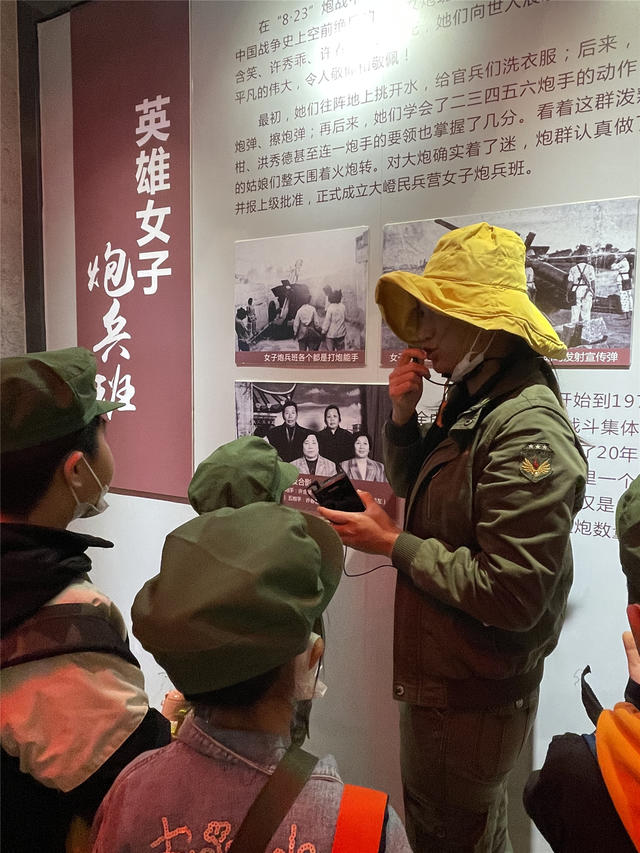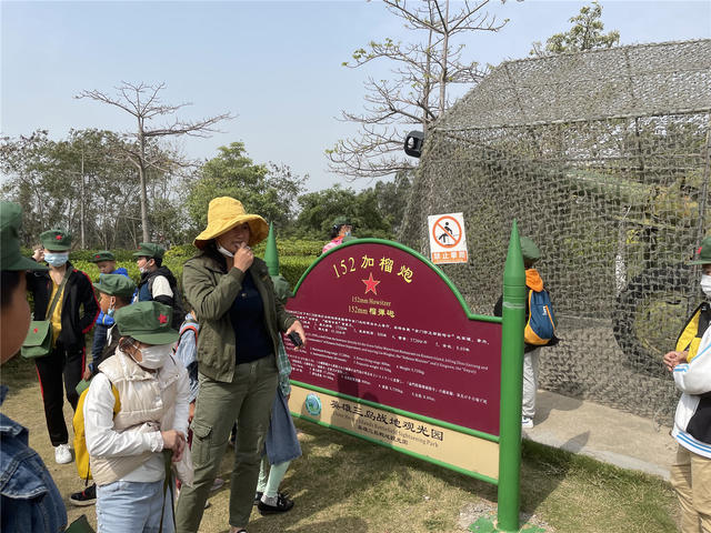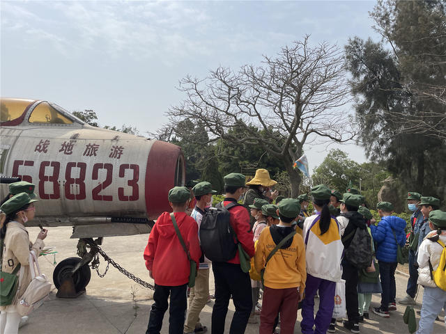 随后,小红军跟随讲解员的脚步,走进英雄三岛战地观光园,参观8·23炮战遗址。看飞机,摸大炮,忍不住跟大炮留个影,近距离体会“艰苦奋斗、甘于奉献、不怕牺牲”的英雄三岛精神。