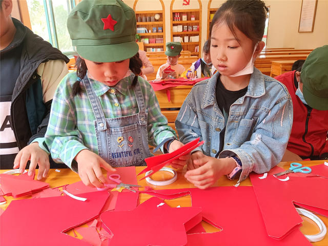 活动最后,邀请了特别嘉宾福建省作家协会会员、厦门市剧本创作交流中心签约编剧、儿童文学作家——香橼老师,带着小红军一起制作手工书“闪闪红星”,庆祝中国共产党成立100周年。