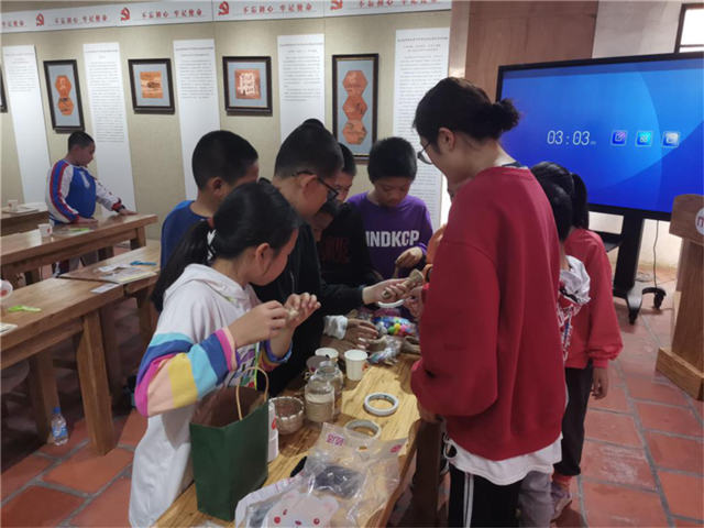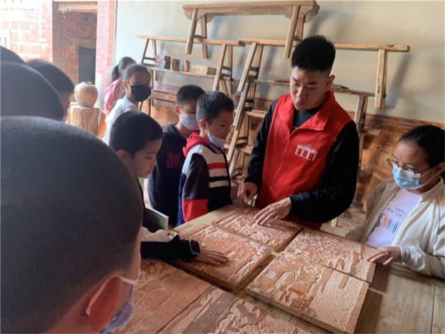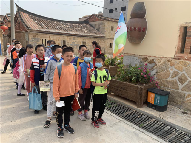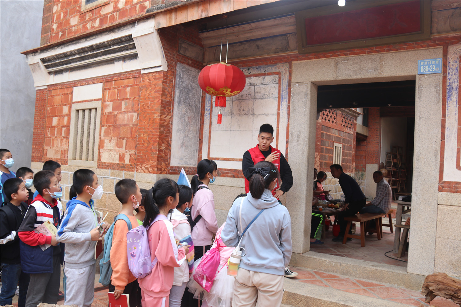 翔安区内厝镇黄厝村是一个千年古村,也是革命老区,深厚的文化底蕴,都是藏在这片幽静、深沉的土地里,古老且焕发着新生。小读者们在讲解员的带领下,边听边走边看,在摆满老物件的农创馆认识农耕用具,领略古代农耕智慧;在传承先辈“乐善好施”优良美德的檀越书院,给人以精神洗礼;在布满红砖雕的芳华礼堂,在工匠们精湛技艺下的一砖一瓦镌刻出红色历史文化印记,学习光辉历史,感知红色荣光。