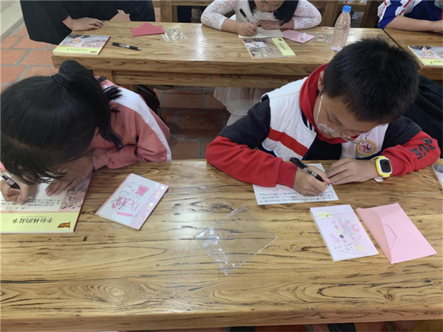 最后,孩子们用小卡片记录所见所闻,提升书面表达能力的同时引导他们传承中华优良传统美德,从中学会饮水思源,珍惜他人的劳动成果,学会回报、关爱他人!