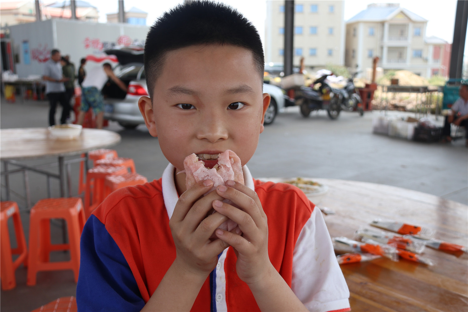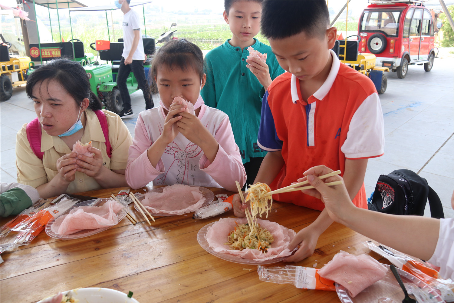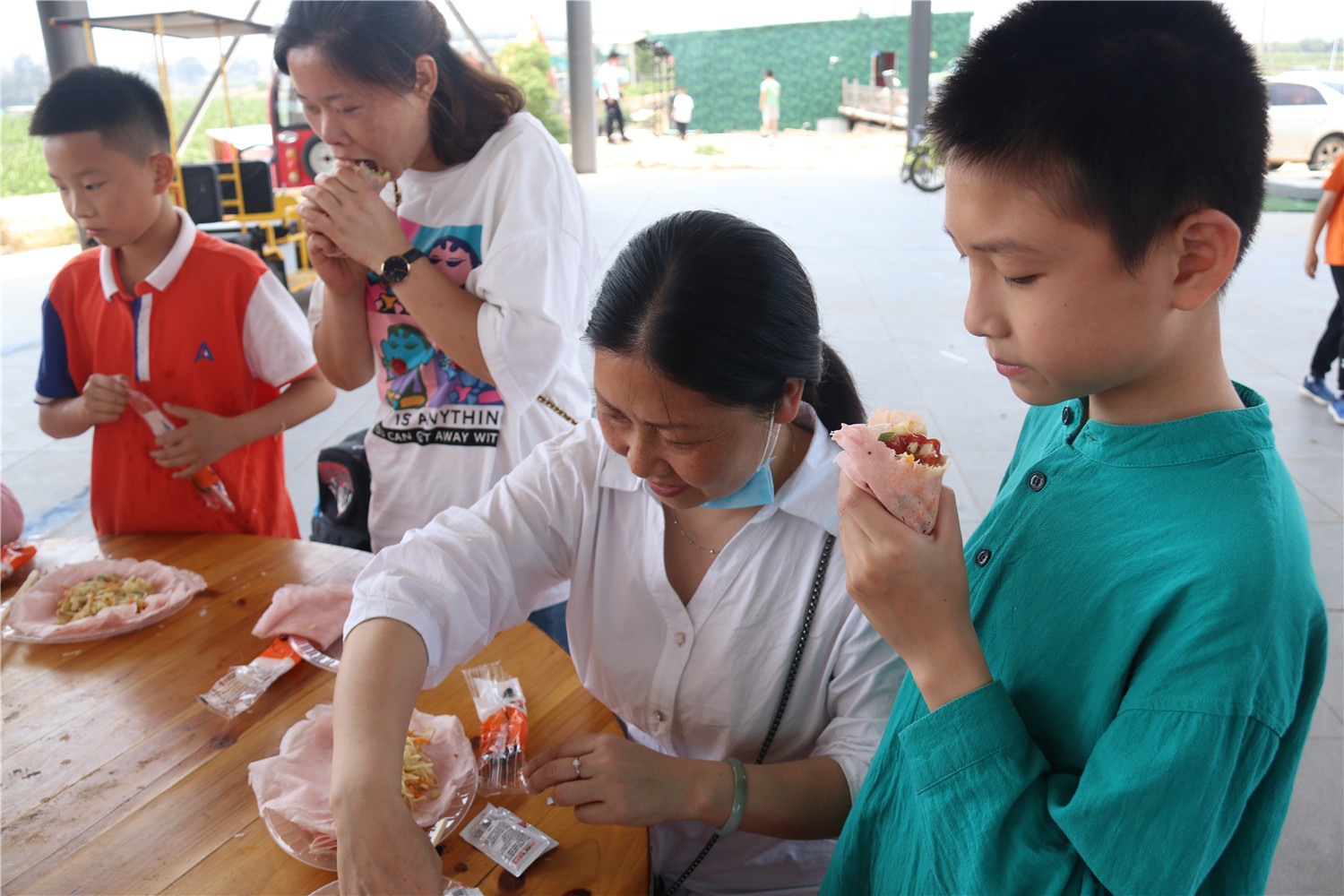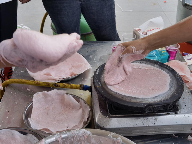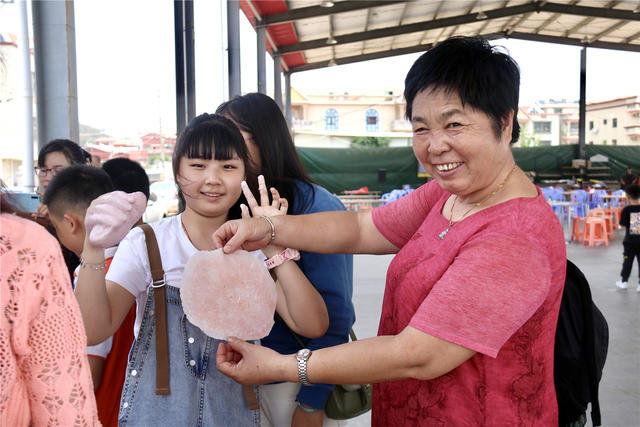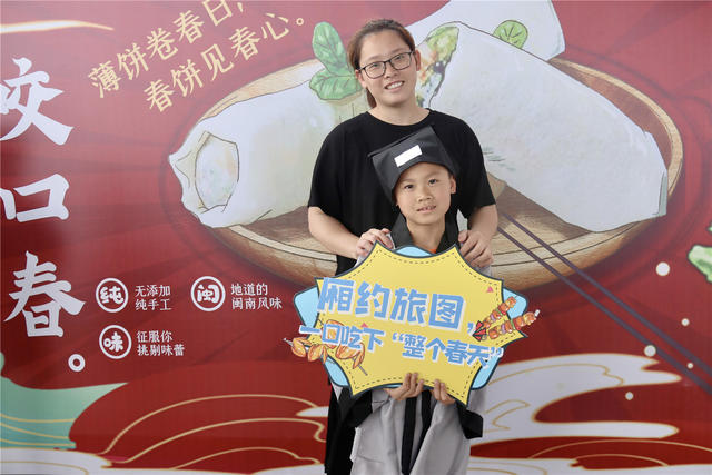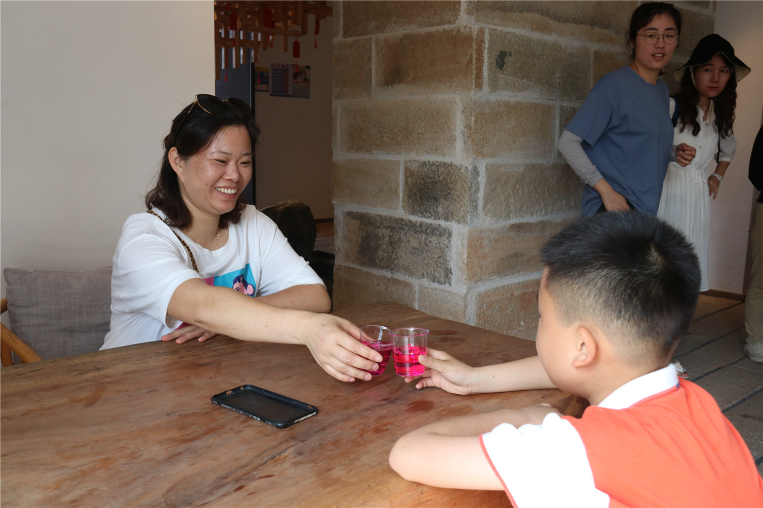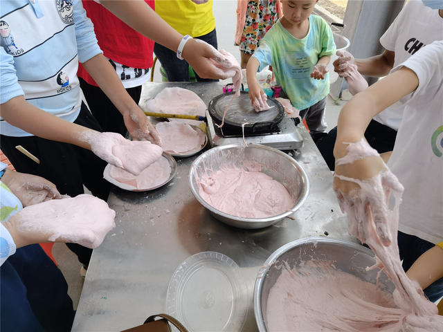 课下,邀请闽南薄饼老手艺人教小读者们摊饼皮。新鲜的大宅特色火龙果汁加入面粉中,粉色的面团在老手艺人手中宛如活了一样,摊出一张张粉色的饼皮。小读者们觉得超级简单,结果不是黏身上了,就是摊焦了饼皮,要熟练掌握手艺活还得下一番功夫。