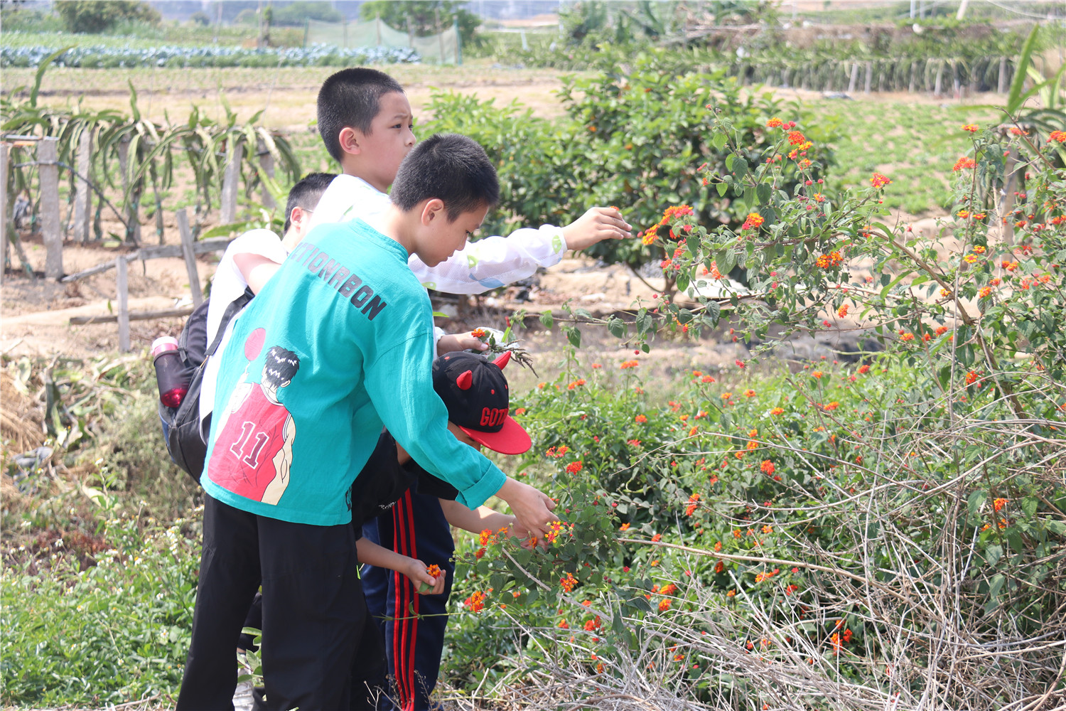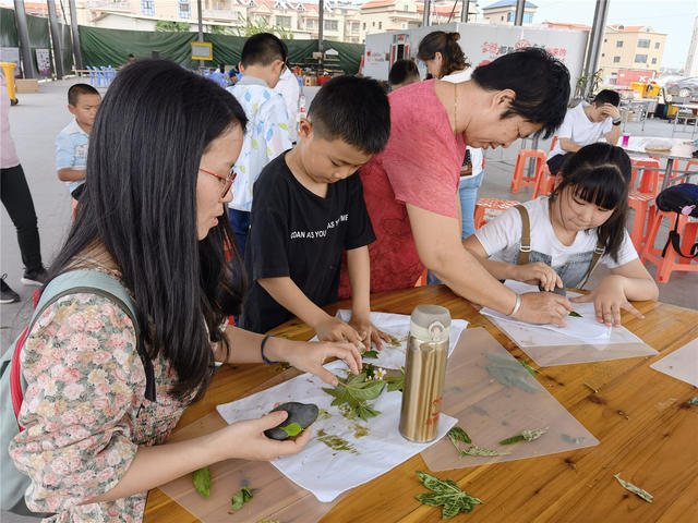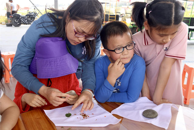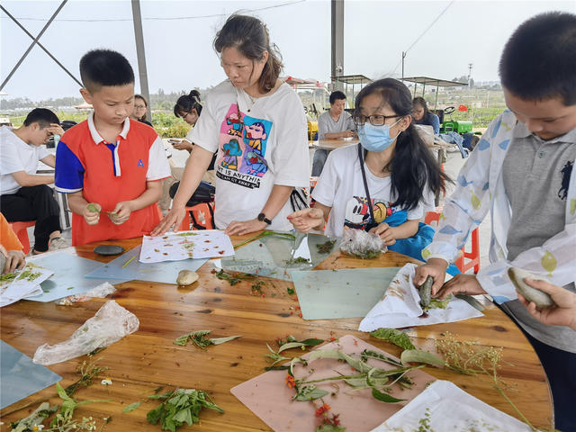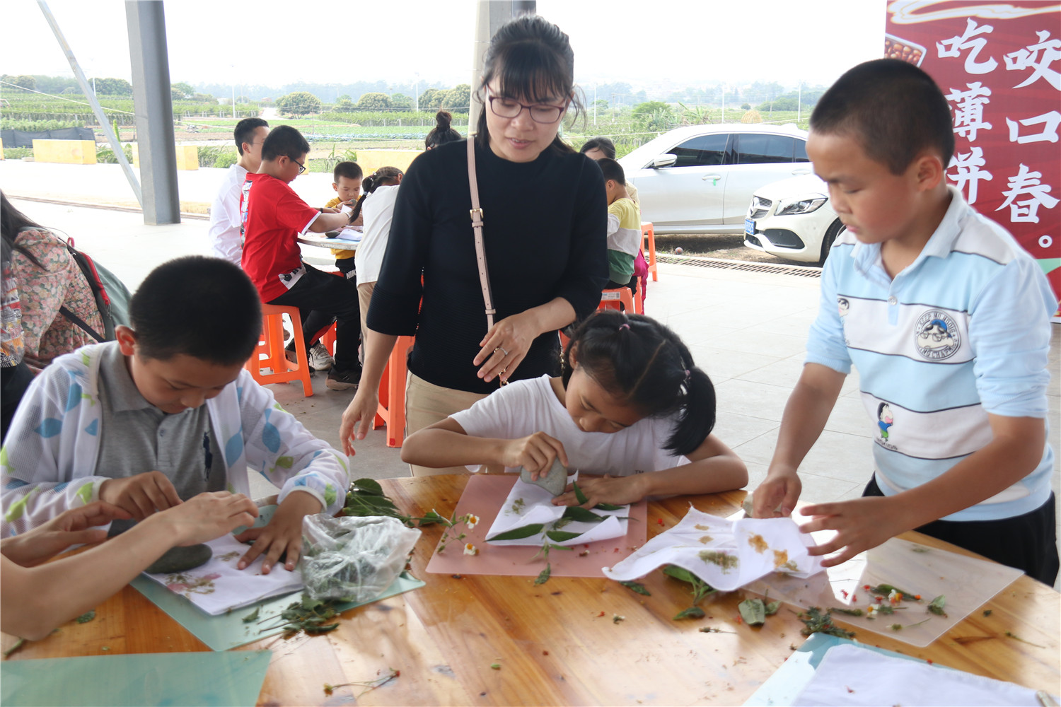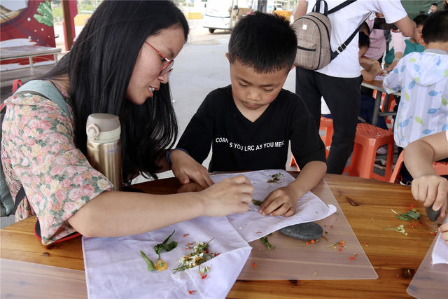 课后,读者在老师的带领下,走进1400亩火龙果田园,认识路边的植物,了解植物的构成,并采摘了花、叶子,通过草木拓染的形式,将美好春日留在身边下。