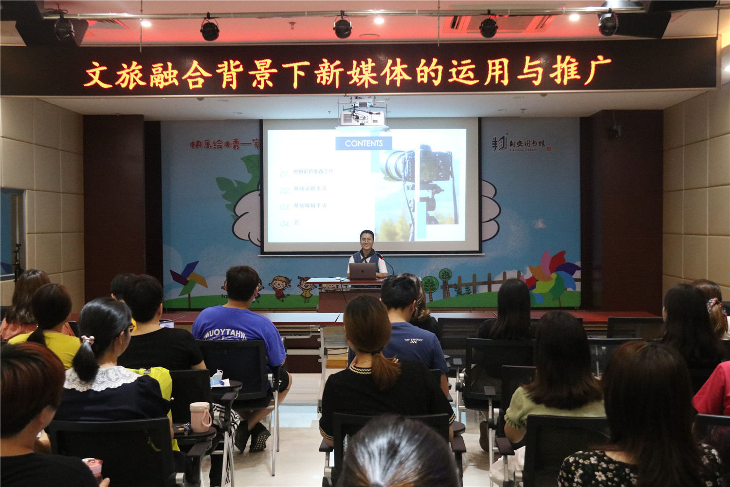 邀请了超星公司视频制作师高雅来翔图授课,主讲《文旅融合背景下新媒体的运用与推广》,理论结合实际操作的视频制作讲解,让馆员们初步认识了视频拍摄、剪辑等内容,帮助他们在翔图的文旅融合工作中灵活运用新媒体,为今后丰富翔图视频号内容奠定基础。培训会结束后,馆员还需在两周内提交视频制作作品进行竞赛和评比。