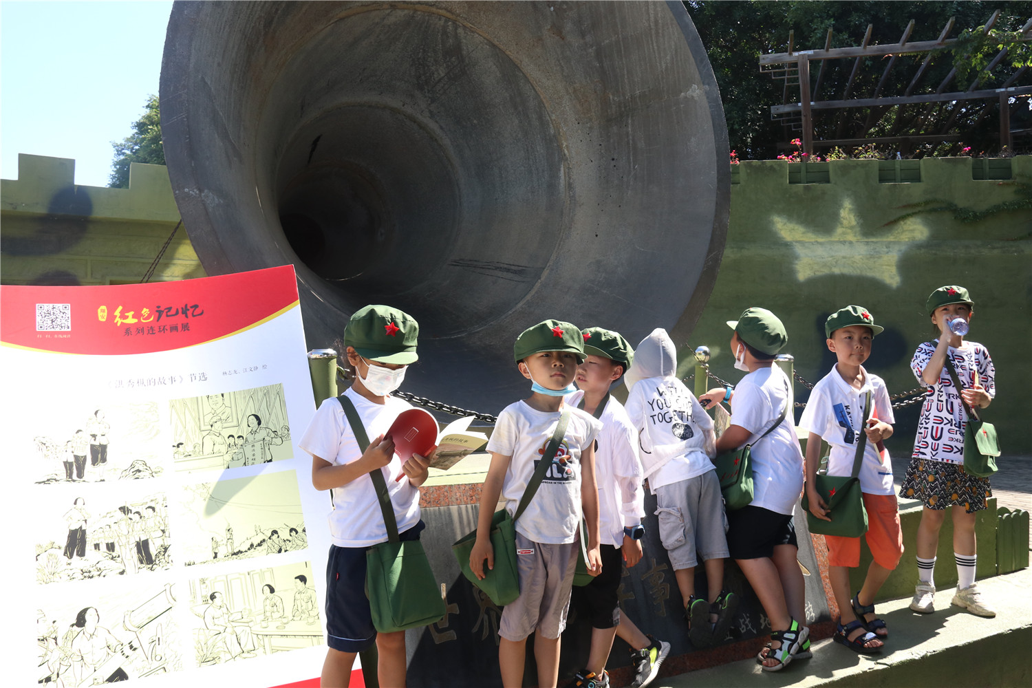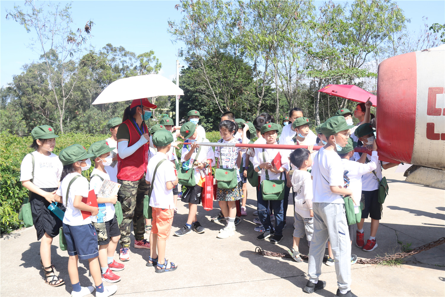随后,小红军跟随讲解员的脚步,走进英雄三岛战地观光园,参观8·23炮战遗址。看飞机,摸大炮,忍不住跟大炮留个影,近距离体会“艰苦奋斗、甘于奉献、不怕牺牲”的英雄三岛精神。