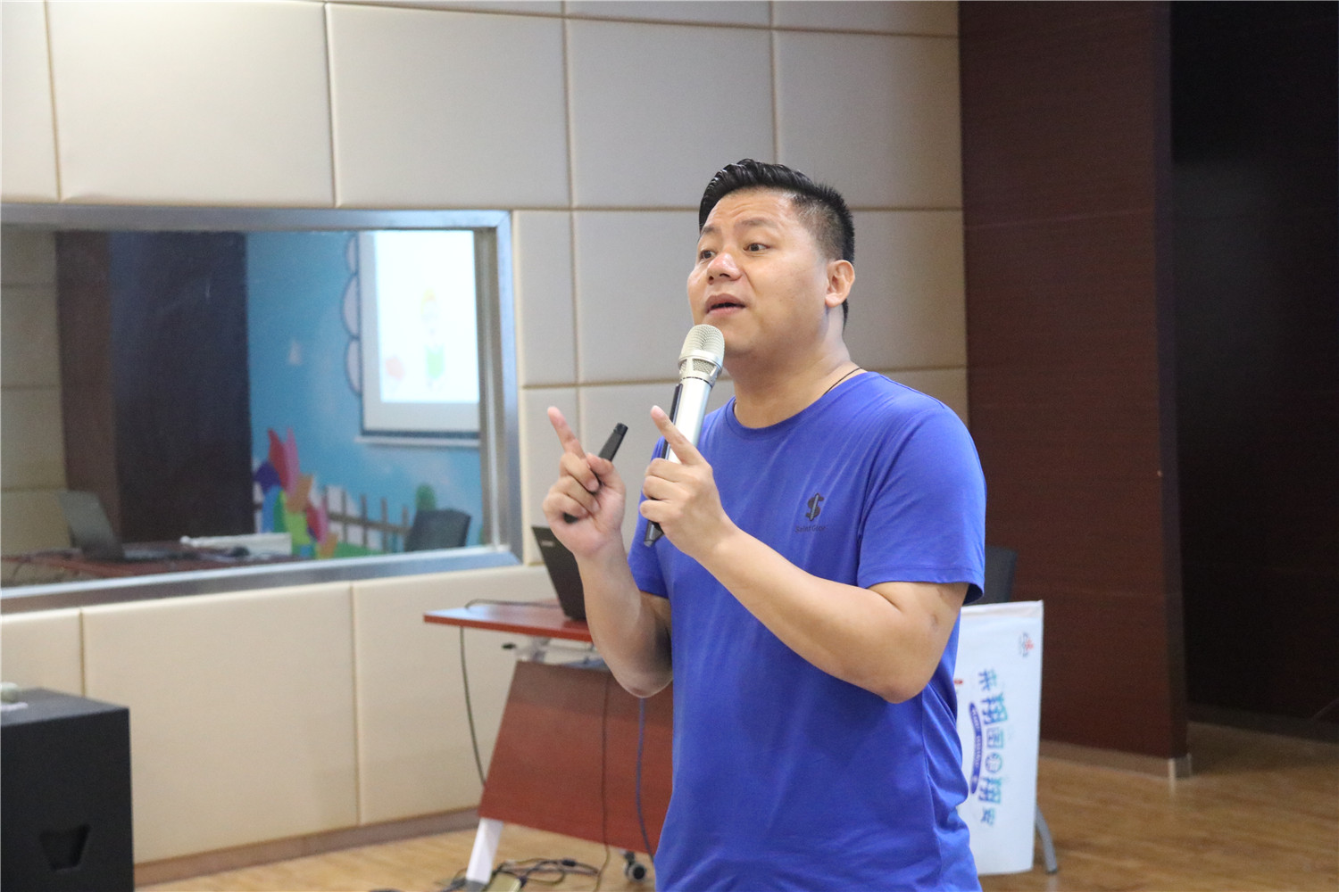 活动上半场——“翔安人的民俗世界”,由洪海樵老师主讲。按一整年的节日顺序,洪老师一一介绍了翔安岁俗、节事、民间信仰等概况及对应的特色民俗活动,并着重介绍了送王船、宋江阵、拍胸舞等由民间信仰而出现的一些民俗活动,这些内容虽然与居住在城市里的孩子们相距甚远,可能对于他们十分陌生,但老师风趣幽默的讲解让晦涩的知识通俗易懂,使得现场气氛轻松活跃,笑声及掌声此起彼伏,达到了很好的课堂效果。