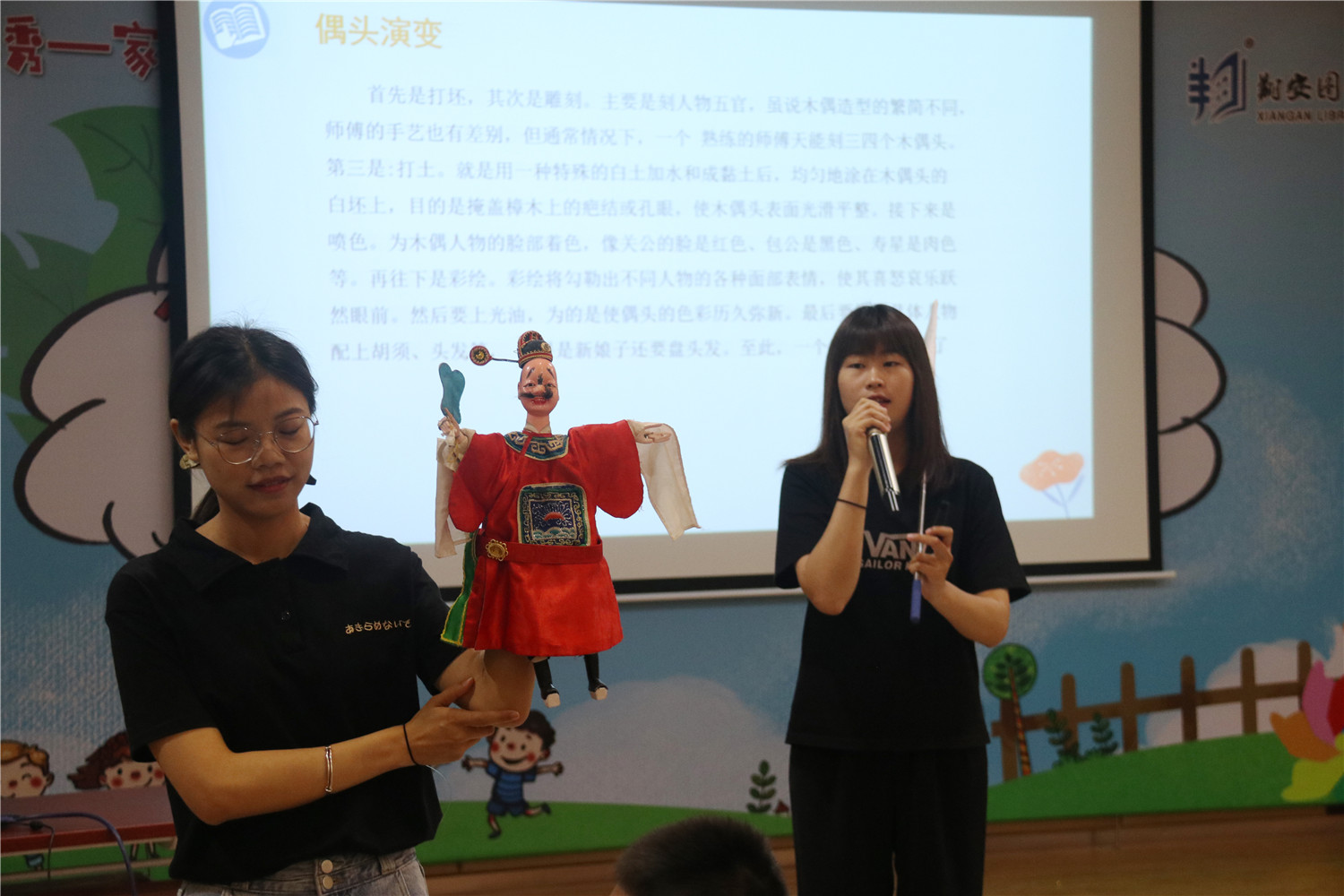 活动下半场——“翔安特色非遗体验”,由专业的木偶戏老师为大家带来讲解,包括木偶戏的来历、分类,再详细展开了木偶及其各种道具、服装的制作工艺与流程,让现场来宾大开眼界。在介绍了木偶戏的分角及木偶戏基础手法后,木偶戏老师现场表演了一出人偶同台的《大名府》,将活动气氛推向最高潮。