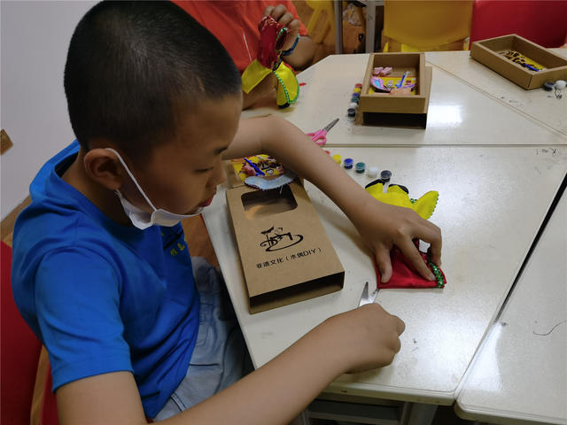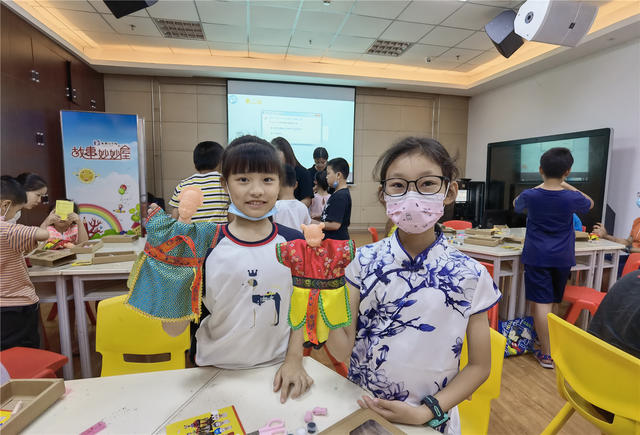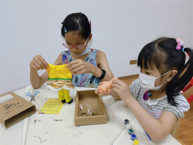 活动最后,木偶DIY环节,孩子和家长一起制作布袋木偶,传承非遗文化。