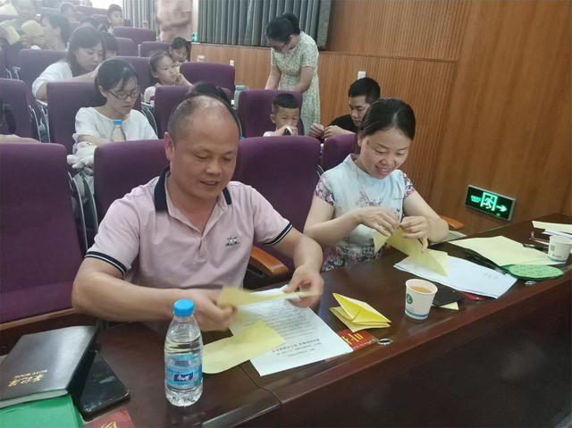香橼老师先介绍了手工书制作的过程与技巧,再拿出制作工具,按照制作步骤展示给大家,在《烧肉粽》的童谣歌声中,家长和孩子们一边学,一边做,表现出极大的兴趣,不多时,一个个小巧可爱的“粽子书”便从小朋友们的手中诞生出来,孩子们纷纷展示自己的作品,不亦乐乎。