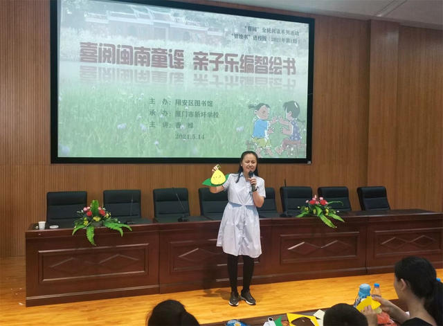 2021年5月14日,翔安区图书馆邀请了福建省作家协会会员、编剧、儿童文学作家香橼老师为新圩学校的学生举办“智绘书”进校园活动,本次的主题是“喜阅童谣 亲子智绘书”,此活动亦是“喜阅”2021年全民阅读月系列活动之“书香校园”活动之一。