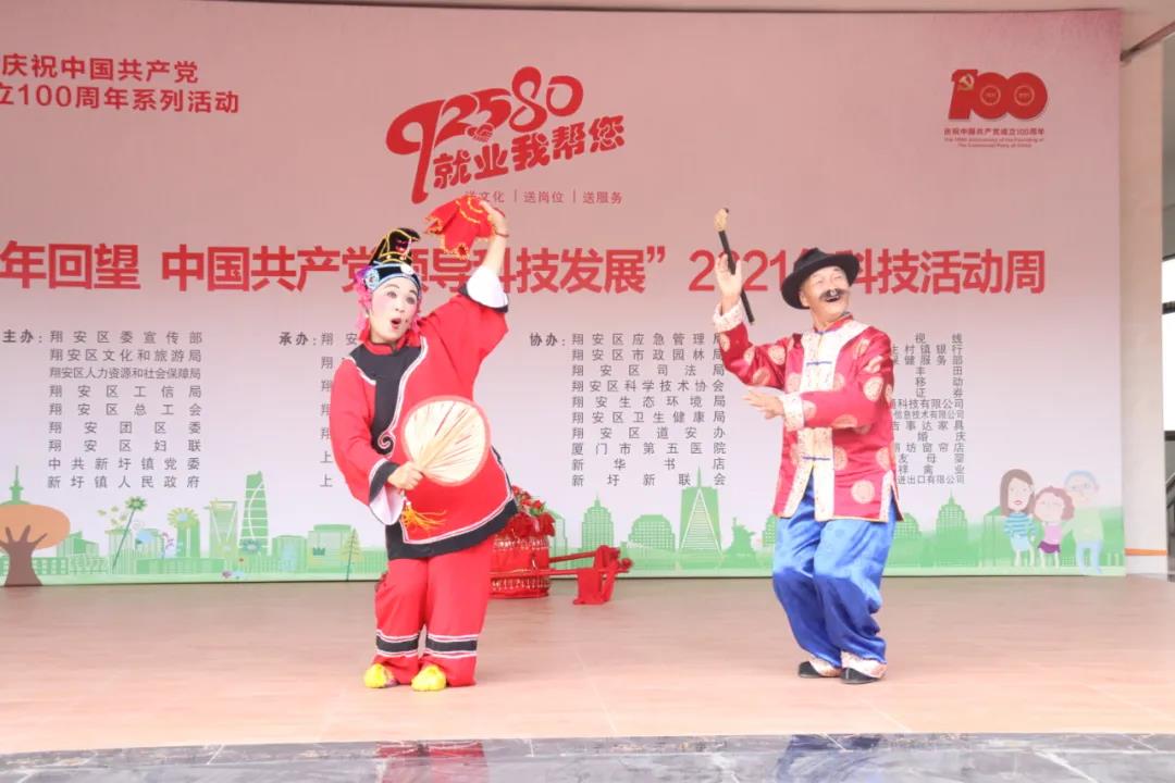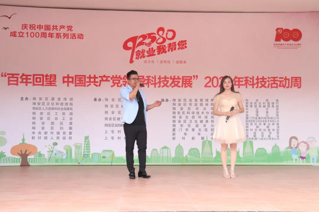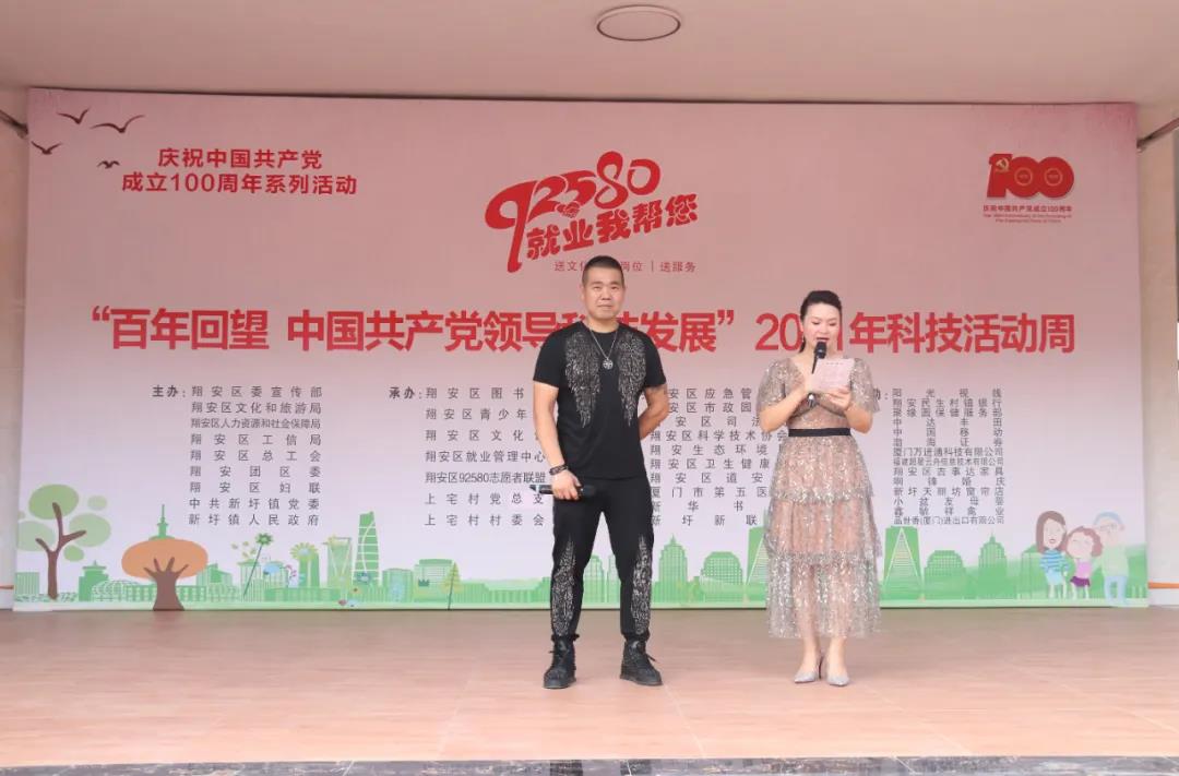 5月27日,翔安区新圩镇上宅村文化活动中心热闹非凡,“百年回望·中国共产党领导科技发展”2021年科技活动周在这里举办,此活动亦是92580就业我帮您“三送”进社区暨文化下乡活动、2021年图书馆服务宣传周系列活动之一。