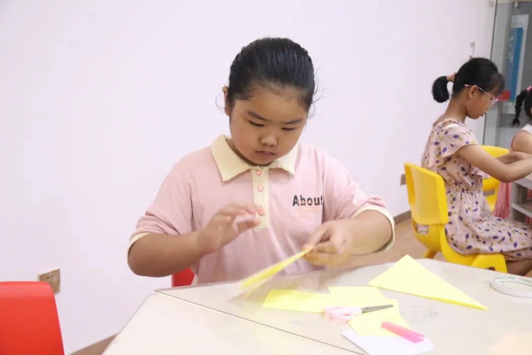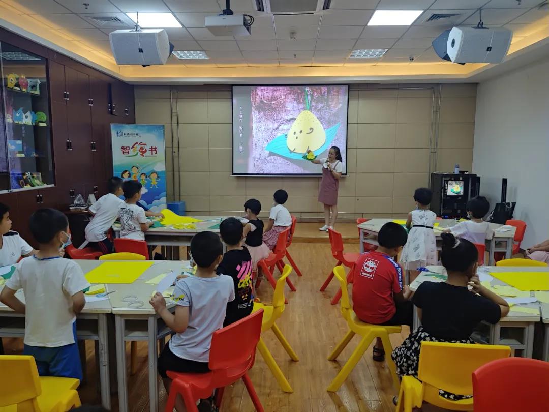 手工书制作环节,老师指导小读者们制作立体“小粽子”智绘书。