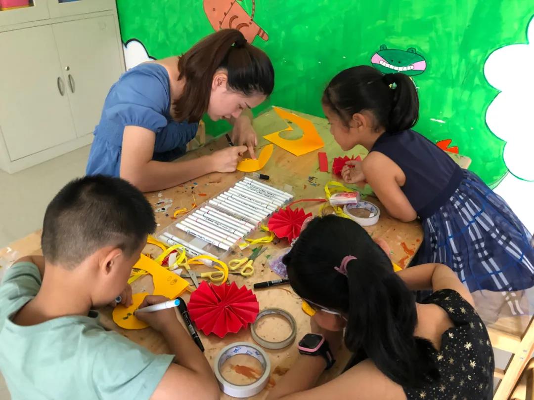 故事结束后,小朋友在老师的指导下,和爸爸妈妈一起完成手工作品《最棒爸爸奖章》