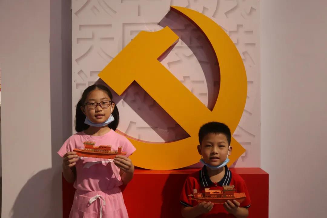 首先,由翔安区图书馆的工作人员带领孩子们参观了《奋斗百年路启航新征程》整个场馆的主题展览。