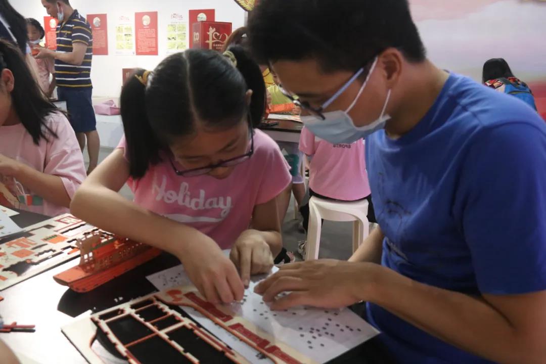 然后,一个活动环节进行了“红船模型的拼装”,通过让孩子们亲自动手、让家长协助配合,既促进了亲子之间的互动,又再次加深了对红色党史文化的了解,将活动的意义发挥到淋漓尽致,让红色主题更加深入人心。
