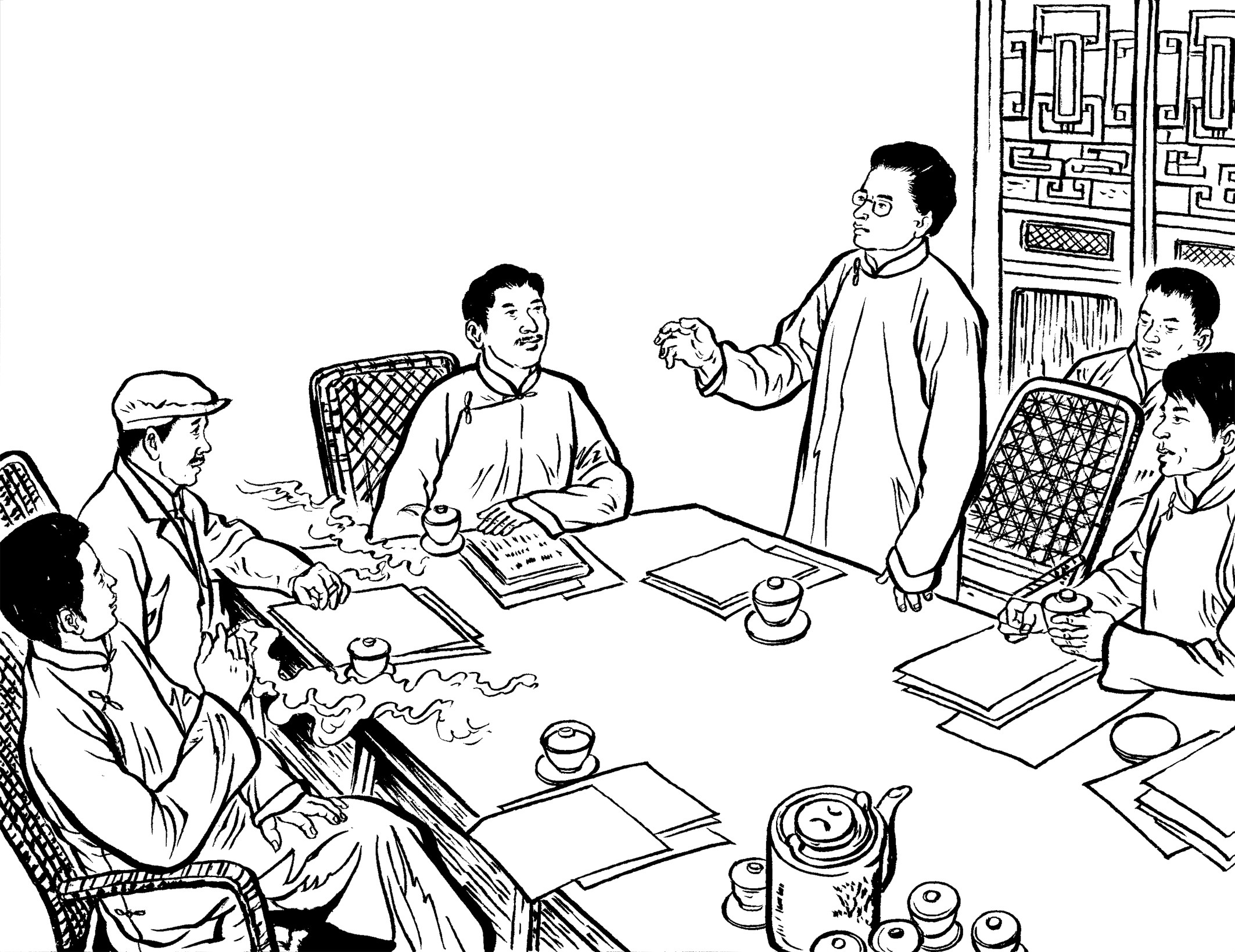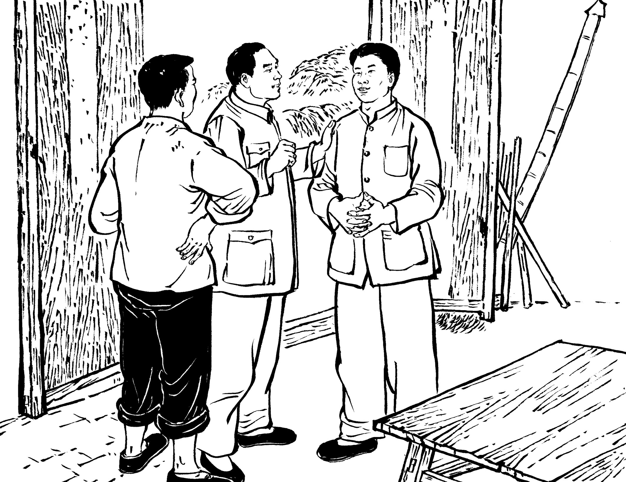 56. 王朝阳和黄章约来到山后桥村,亲自登门拜访大帽山保长黄天香,动之以情晓之以理地分析革命形势,宣传革命道理,希望他能站在人民的一边。饱读诗书、曾任私塾先生的黄天香表示以保境安民为己任。
