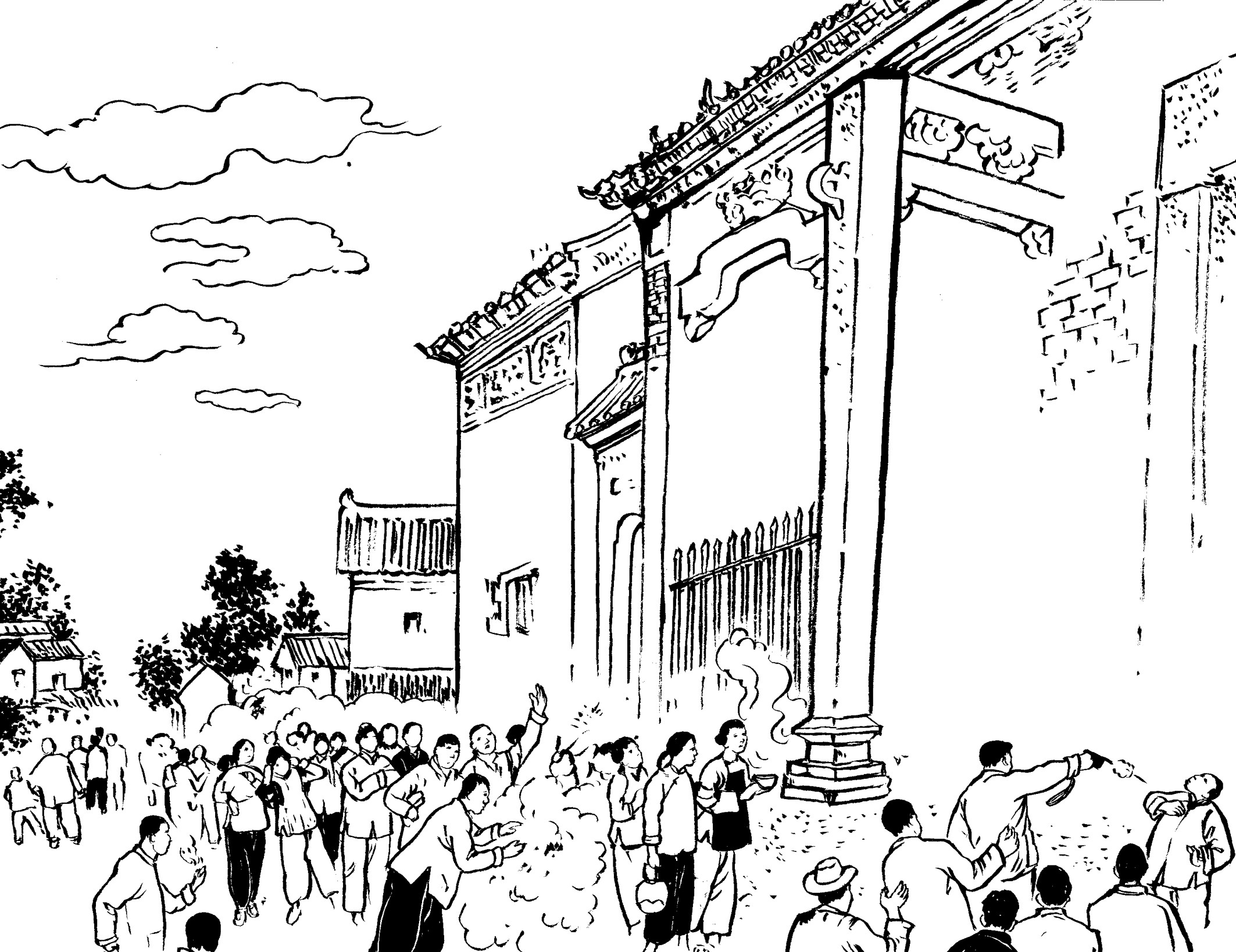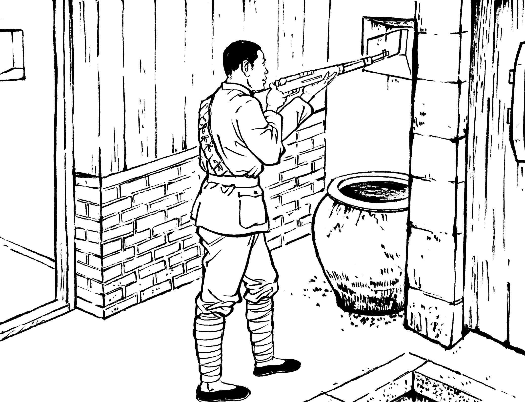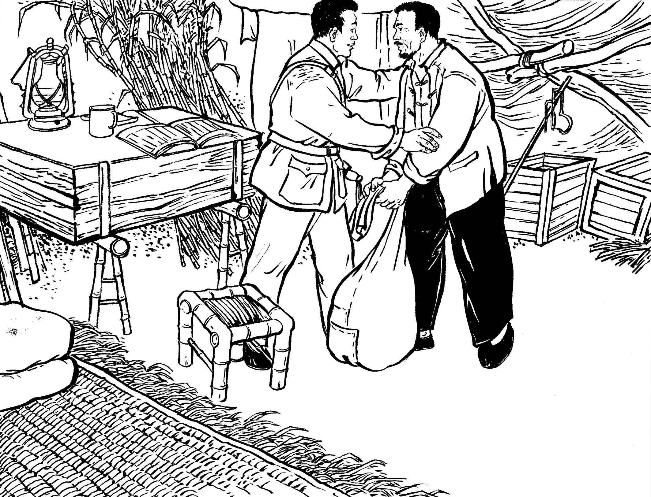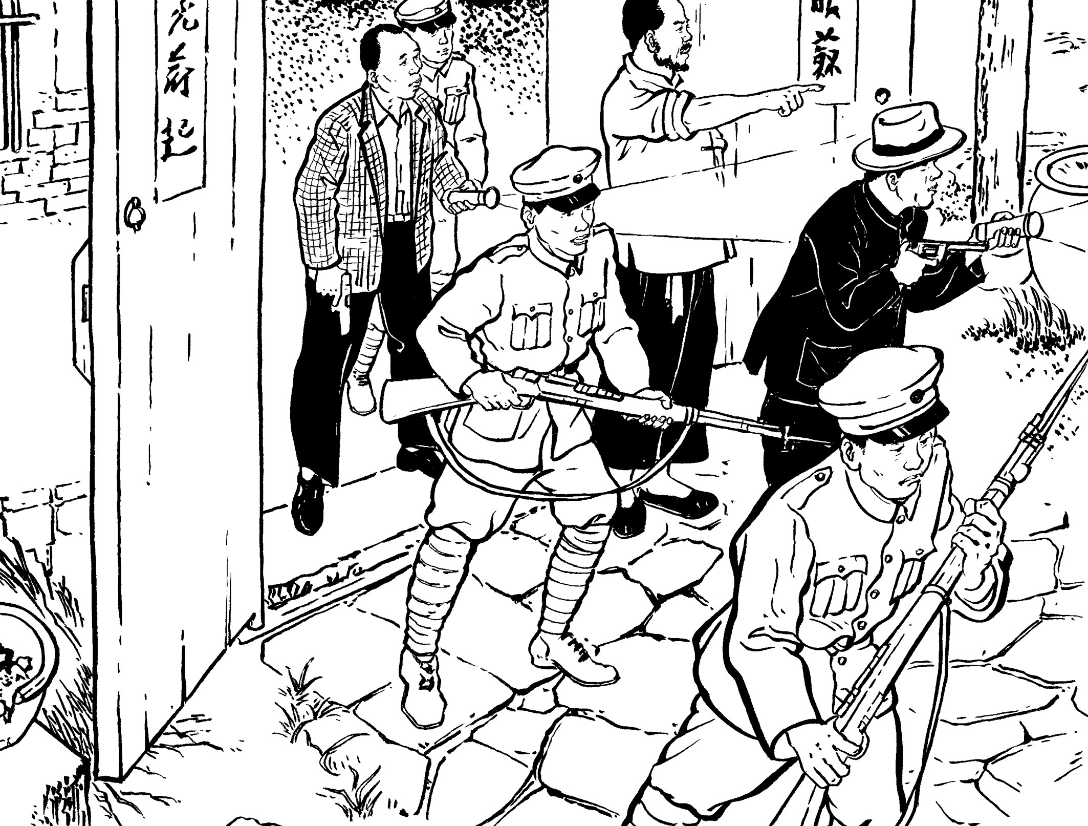 82. “咻——切,咻——切,咻咻切……”随着黄章约发出三声鸟叫声,李祖乃从草垛下悄悄地爬出来,蹑手蹑脚地跑到大门后,拉开门栓,打开大门。